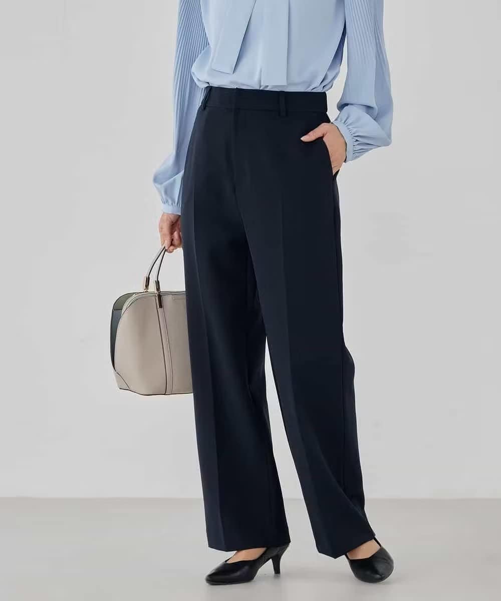 \お客様の声にお応えして新登場/太すぎず細すぎないちょうど良いストレートシルエットパンツ。テーパードほど足のラインは見せたくないけどワイドよりは少しすっきり見せたい、そんな声にぴったりな一着。ワイドのこなれ感はそのままに着こなしやすいシルエットは低身長さんにもおすすめです◎