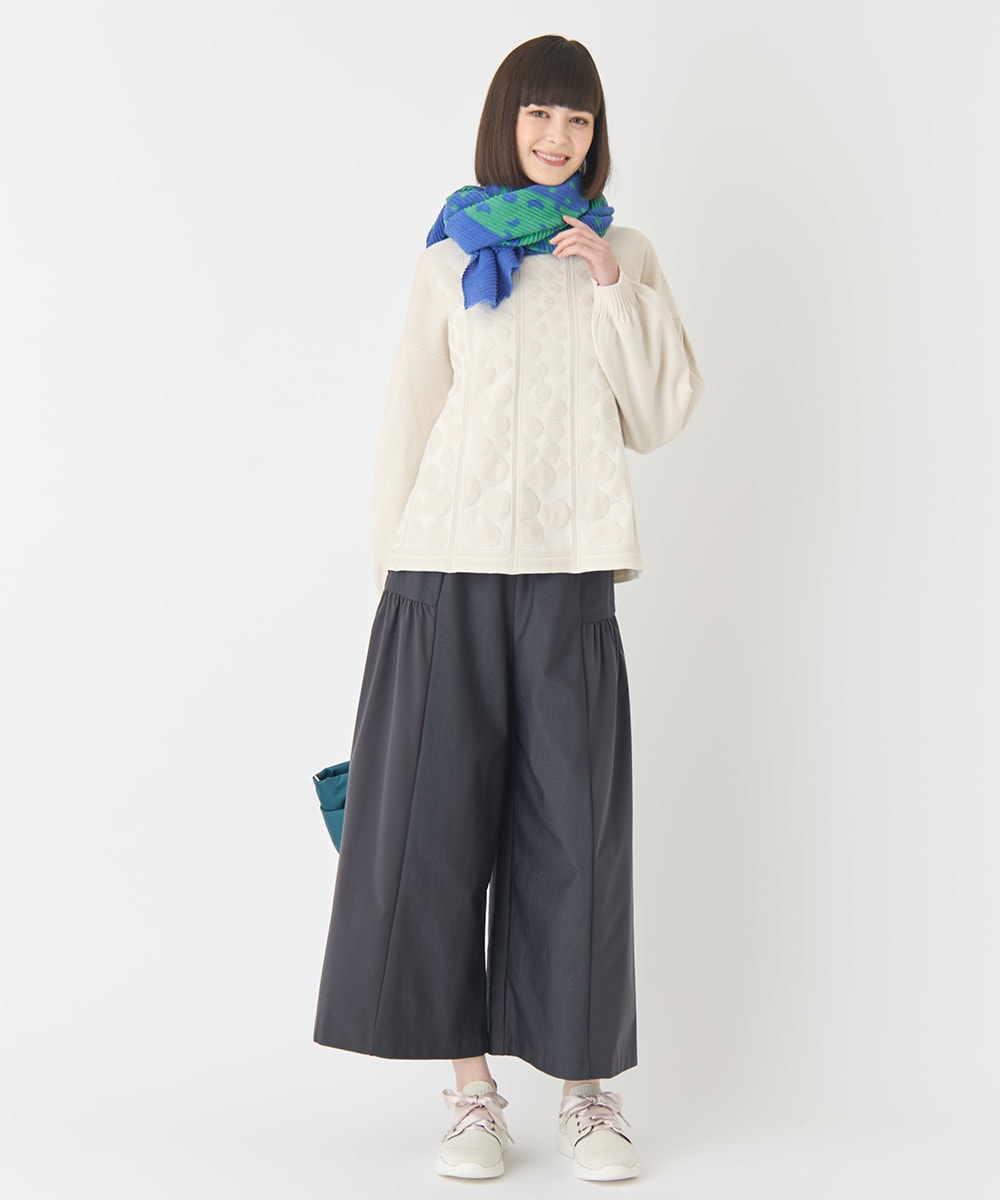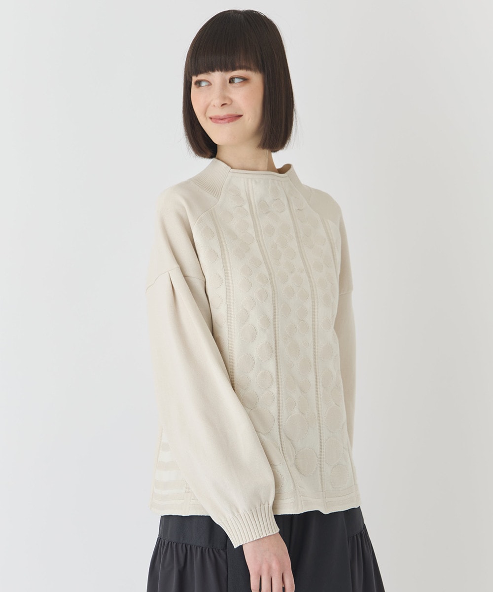 縦のラインに大きさの違ったドットを配置。ラグラン切り替えのボリューム袖もこだわりのシルエット。