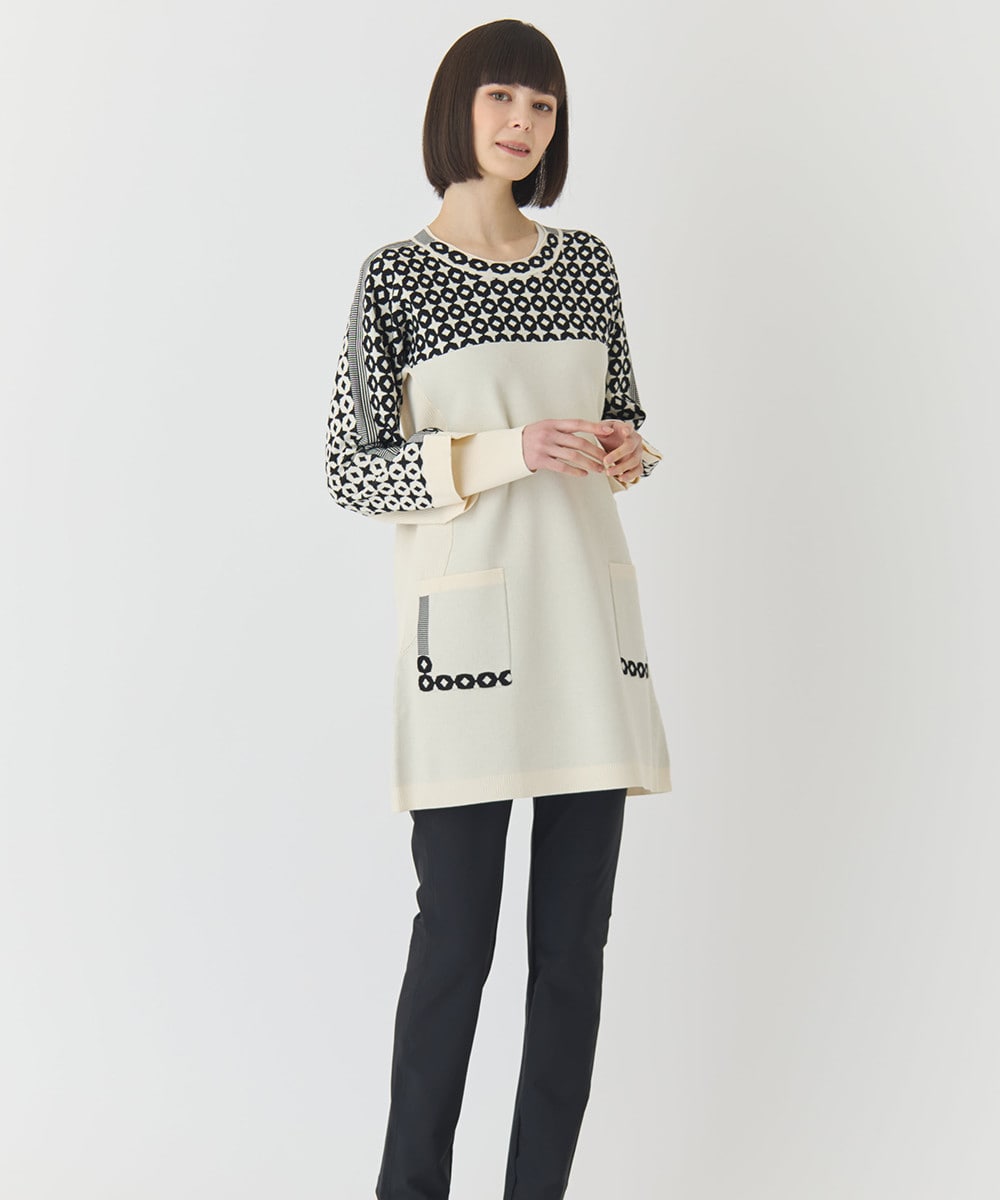 ジャカード×インターシャ幾何柄ニット
