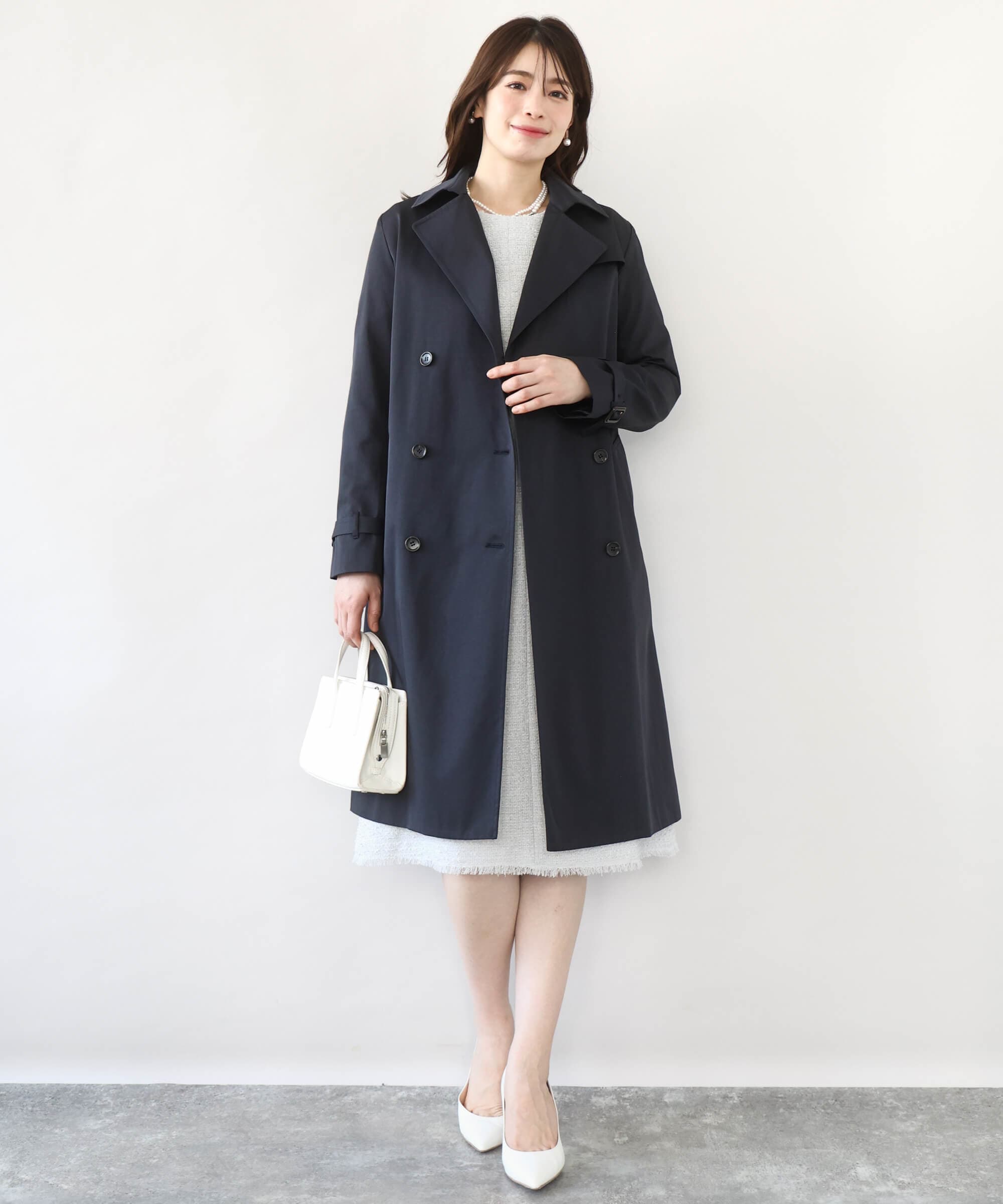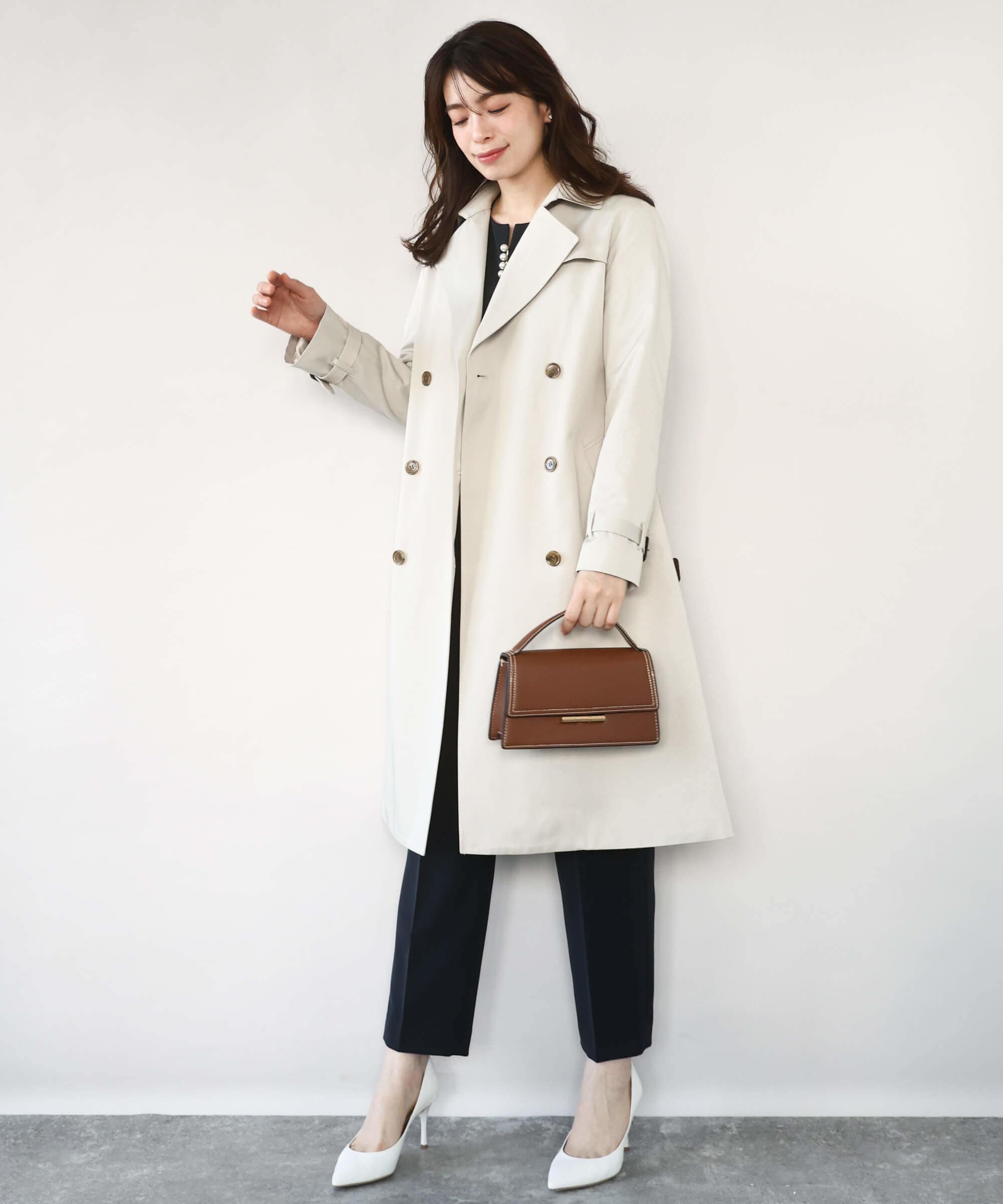 毎年人気の定番トレンチコートが今季も登場。今季は黄味をおさえたクリアなベージュと、上品な印象にもぴったりなネイビーの2色をご用意。シンプルなデザインはトレンチコートの買い替えにもおすすめです。