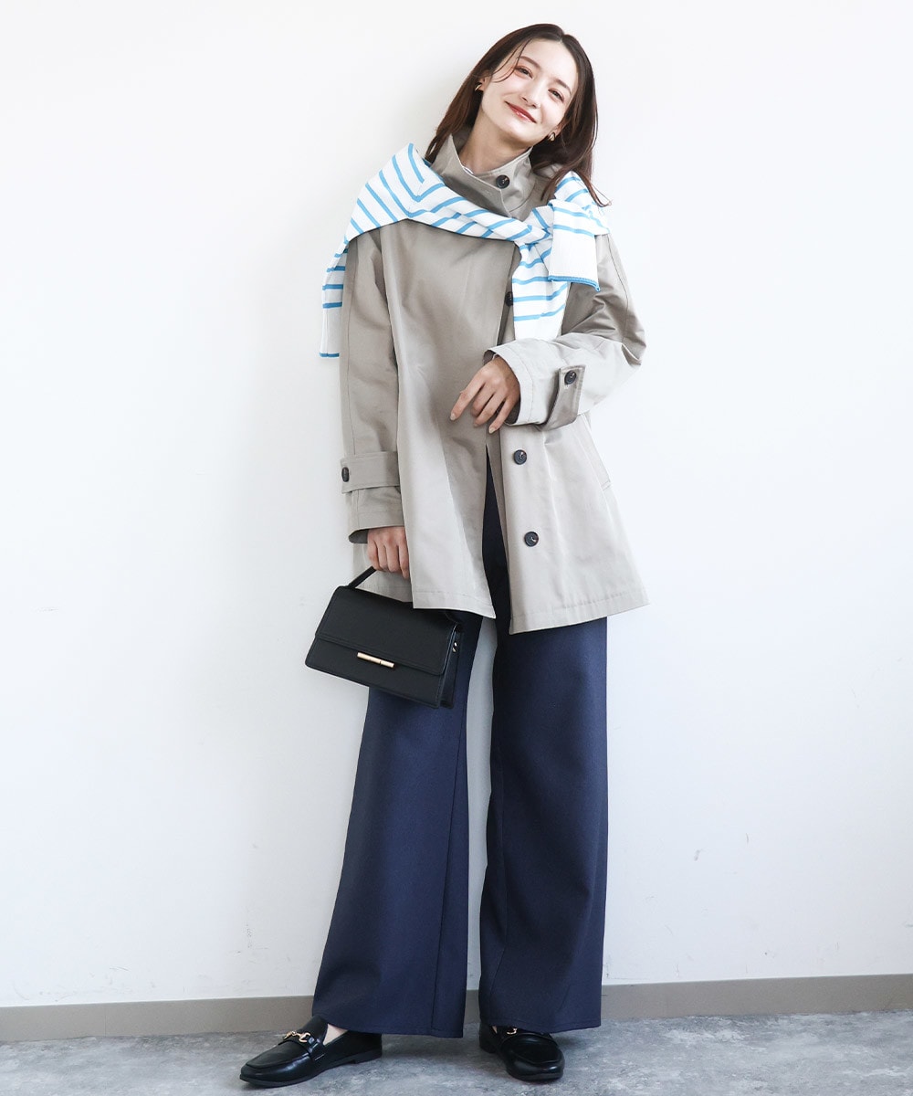 かっちりめのコットン混のアウターはきれいめコーデにしか合わないって思ってない?意外とどんなアイテムとも好相性でデニム合わせの大人カジュアルコーデとも好相性なんです。コートの上からカーディガンを肩掛けするトレンドスタイルはもちろん、鮮やかなボーダーはインナーに取り入れてコーディネートにアクセントをプラスしてもおすすめ。