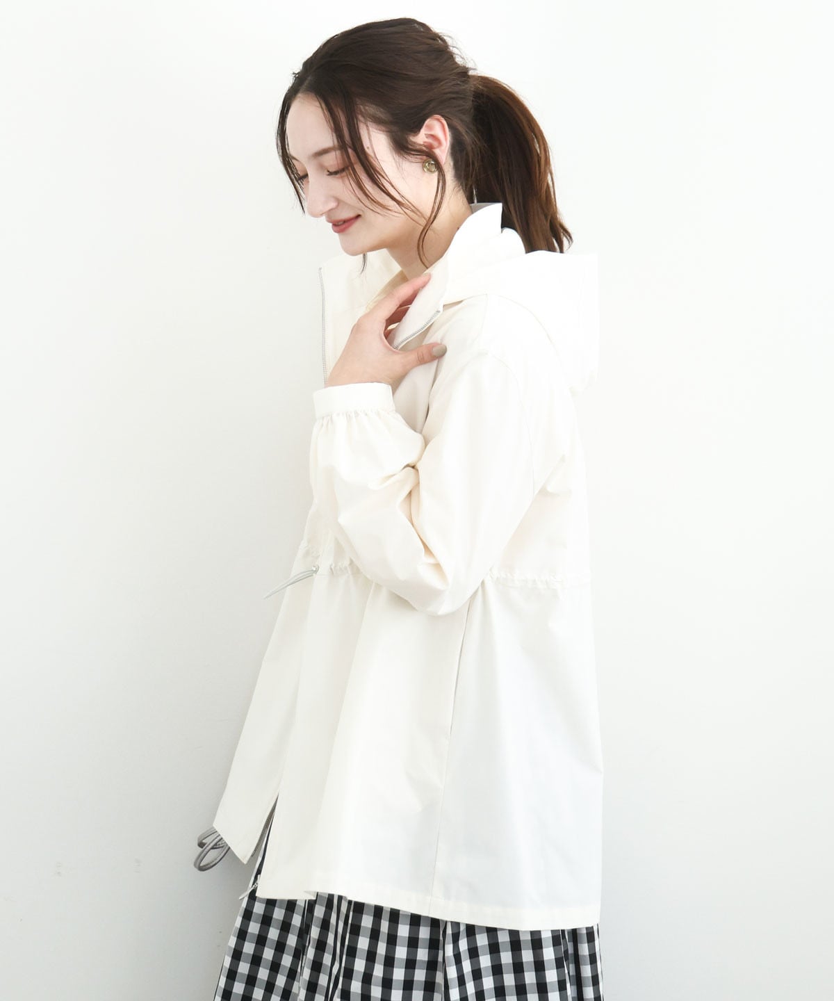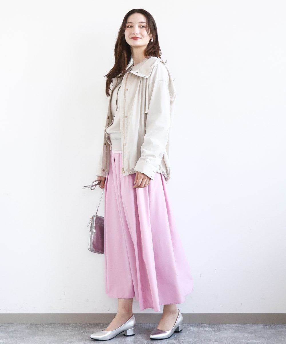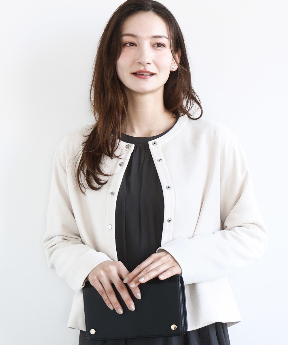 まず真っ先にチェックしたいのは春らしいアイボリーの淡い色のアウター。着るだけでぱっと華やかで軽やか、春気分を盛り上げてくれます。程よいハリのあるカジュアルアウターはきれいなシルエットで着こなせるのもポイント。