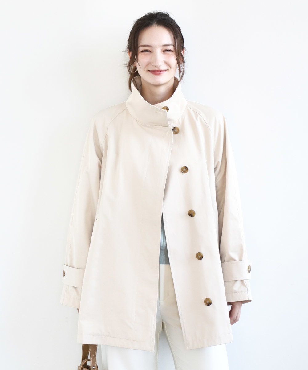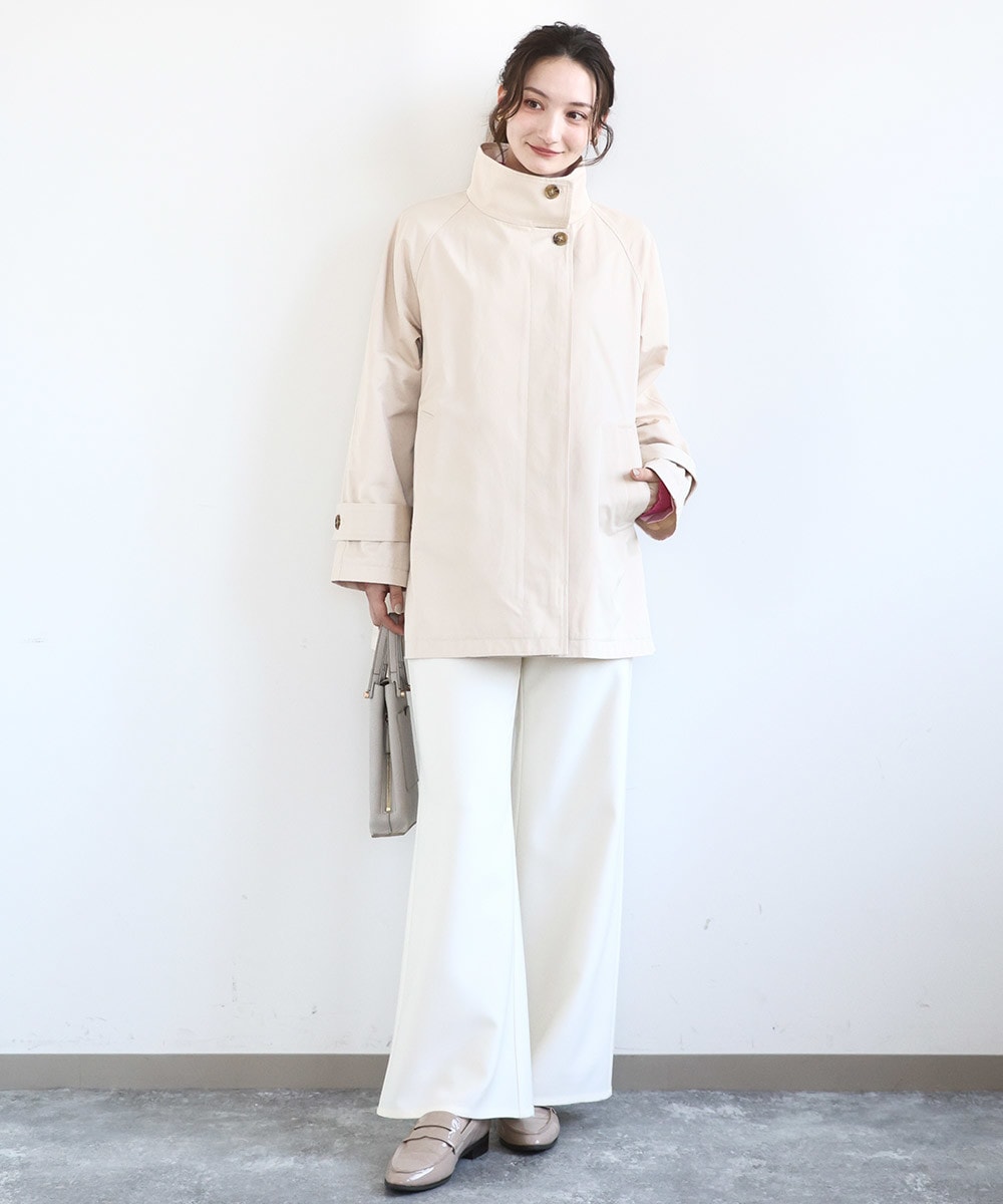 裾に向かってやや広がるテントラインのシルエットのコートは、開けてはもちろん、前を閉めたときのきれいさが魅力的。コットン混ながらも軽くてシワになりにくい素材は、お仕事シーンにも大活躍してくれること間違いなし。