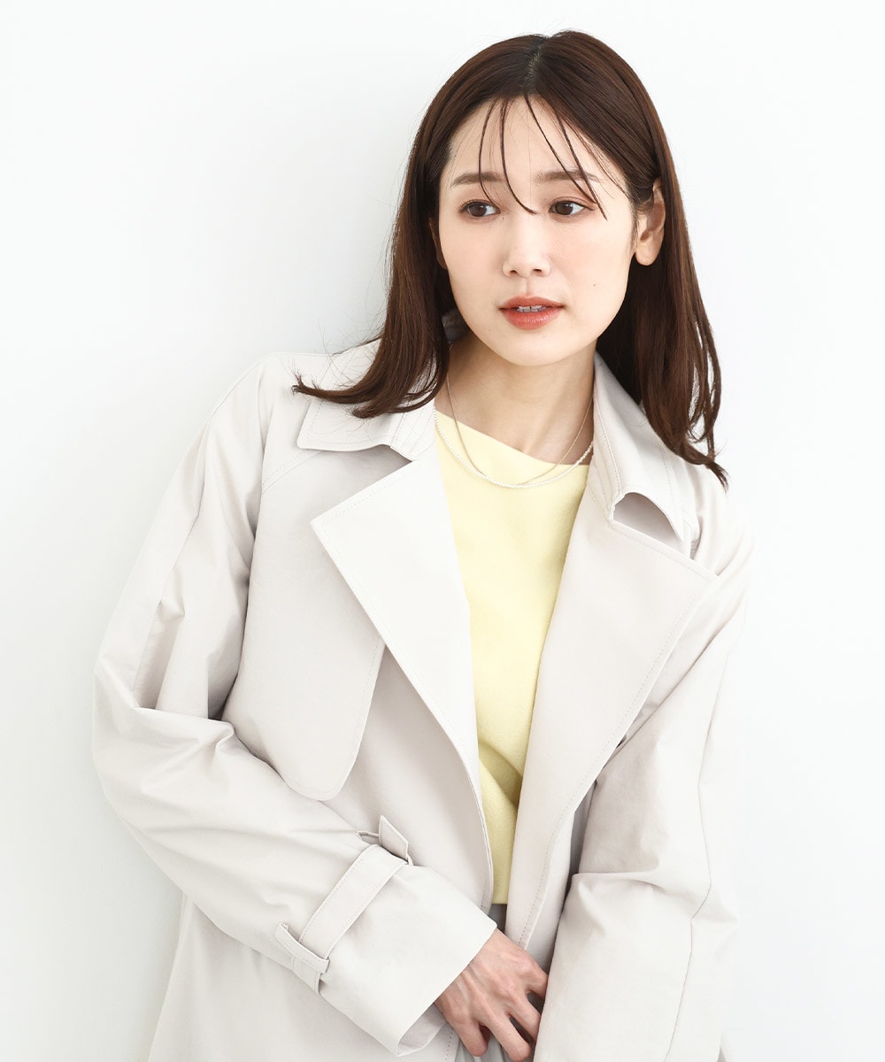 トレンチディティールを取り入れたロングコートは、春と言えばの鉄板アイテム。裏地なしの一枚仕立てなので、ロング丈ながらも軽やかな着心地も嬉しい。