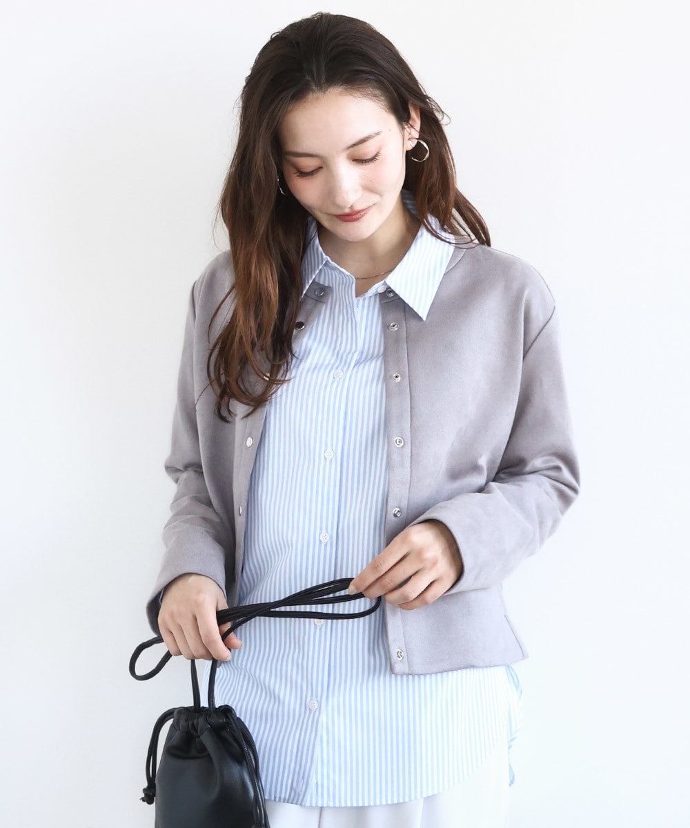 こちらもMK定番人気のフェイクスウェードのショートブルゾン。今季は使い勝手の良いニュアンスカラー2色展開で、より着こなしやすさにこだわりました。しっかりとストレッチの効いた素材は袖を通したときに着心地の良さが実感できるはず。春のきれいめアウターをお探しで迷っているあなたに、真っ先におすすめしたい飽きのこない万能アウターです。