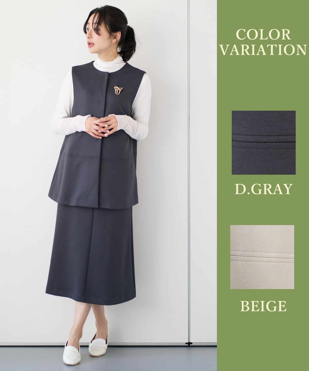 ジャージー素材は伸縮性が抜群でデスクワークから、立ち仕事までストレスフリーに快適な一日を過ごせます。