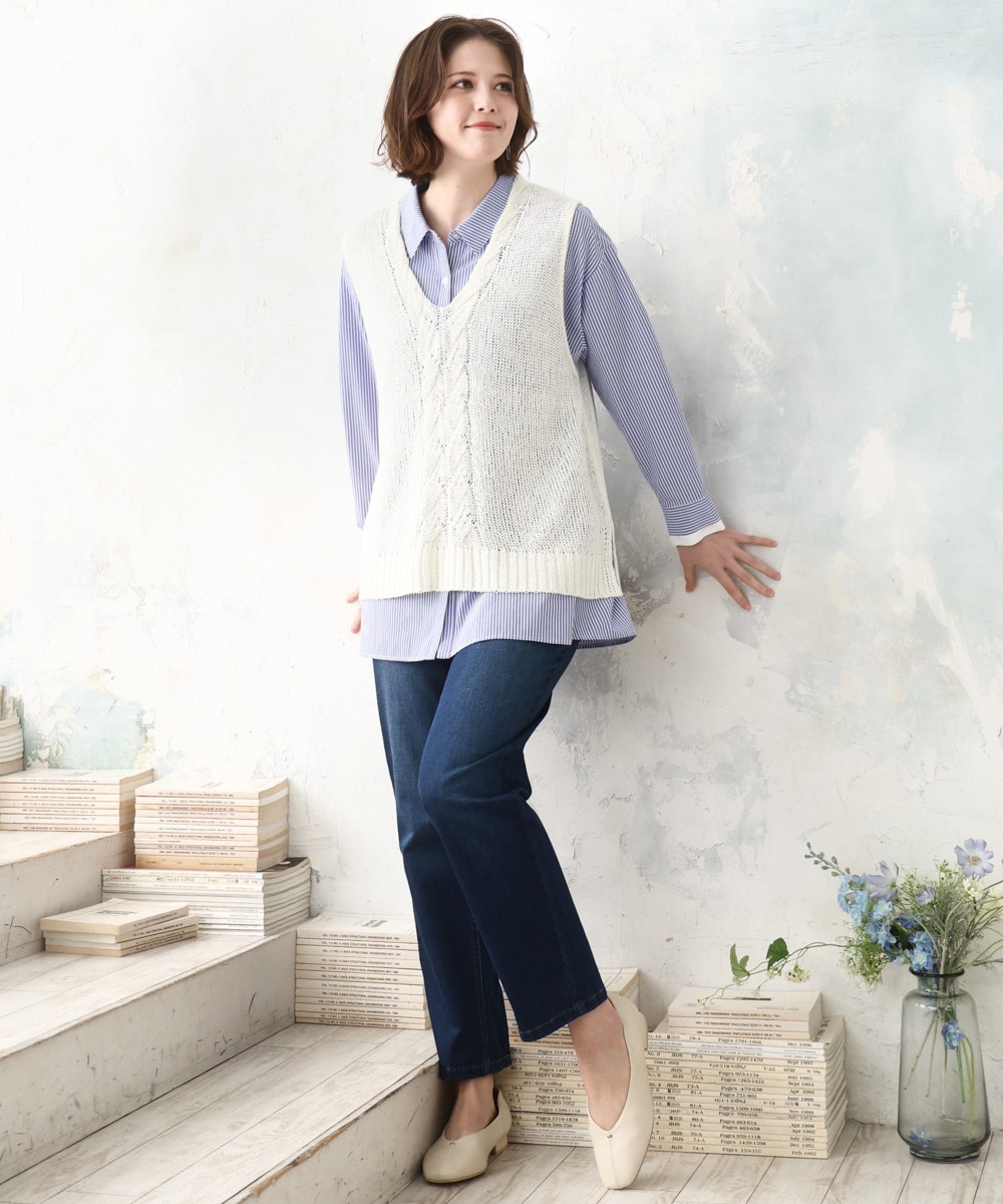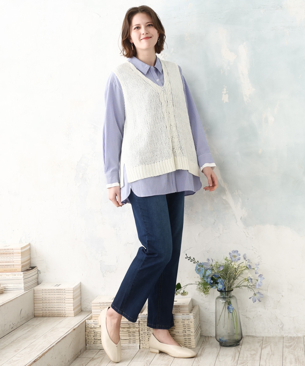 デニムスカートと合わせるだけで、軽やかで親しみやすいスタイルを叶えます。