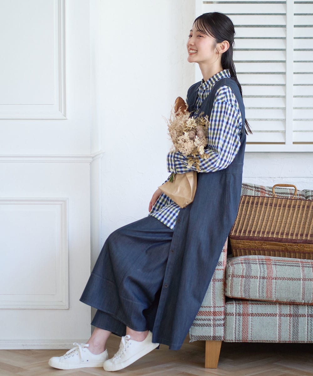 縦のラインが美しくすっきりとした印象に仕上げた、大人顔のジャンパースカート。
