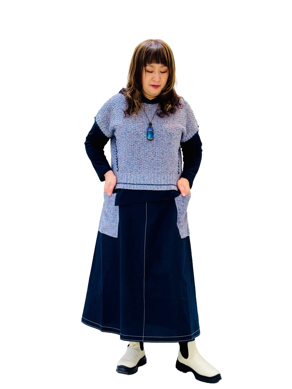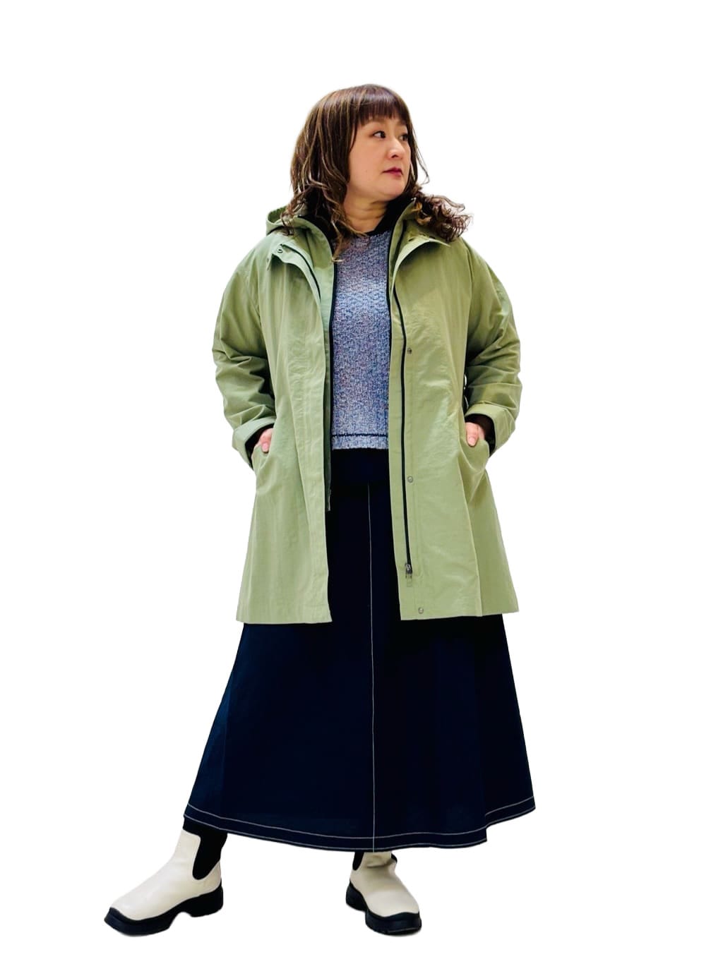 着用サイズ:3Wayコート L、ベスト M、スカート M、カットソー L 身長:157cm