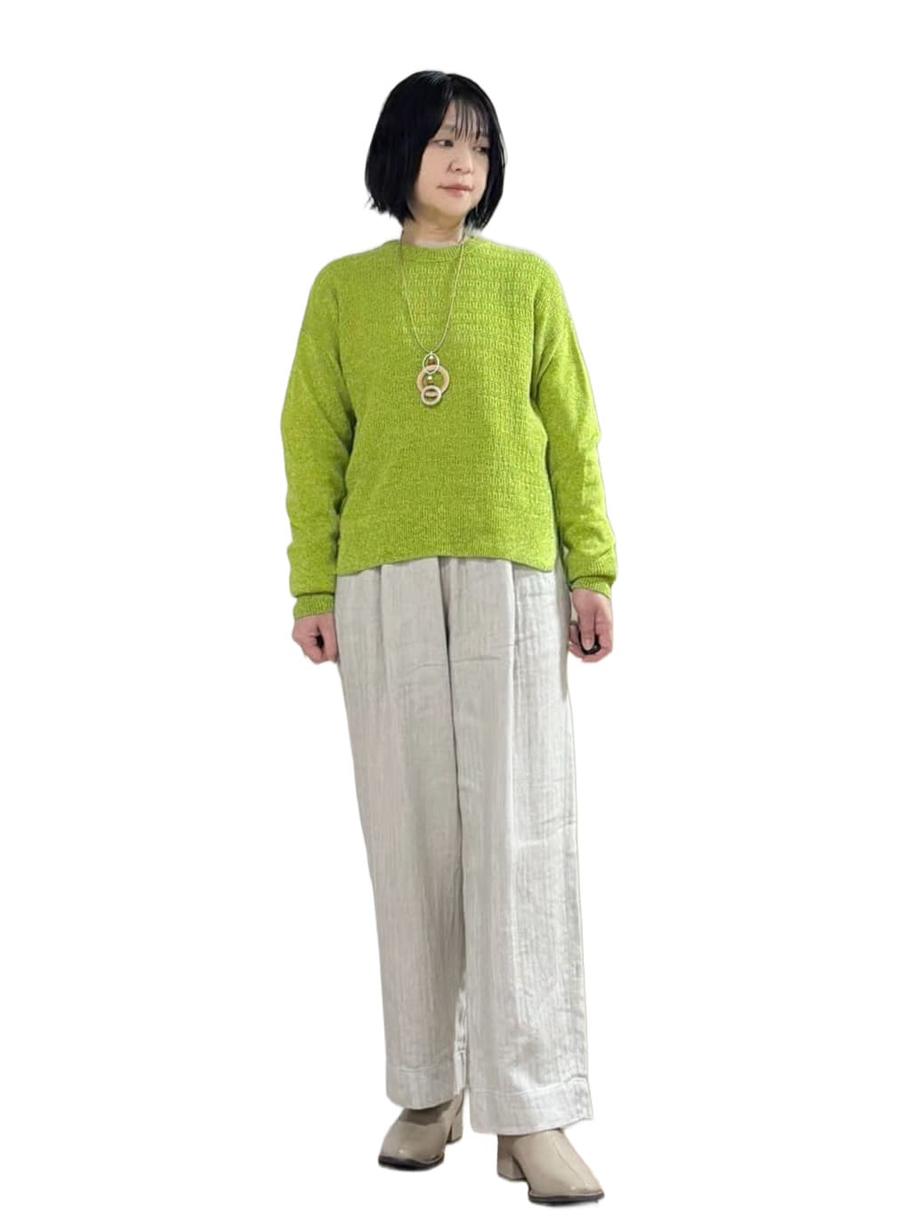 パンツは色違いのベージュも、春らしくやわらかな印象になるのでおすすめです。