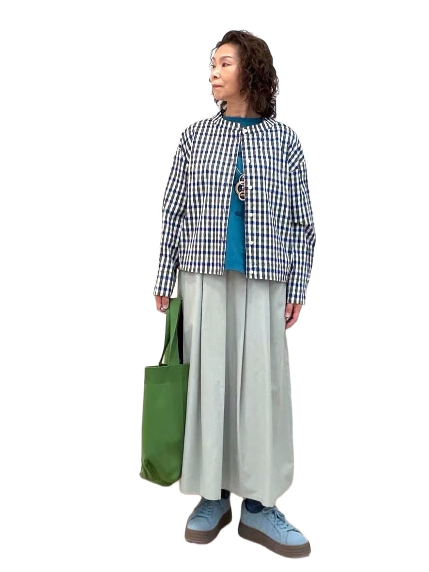 合わせるスカートには、同素材のギャザースカート。