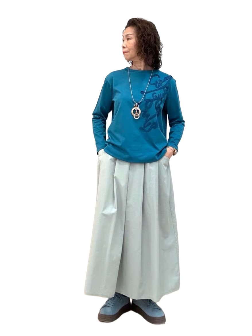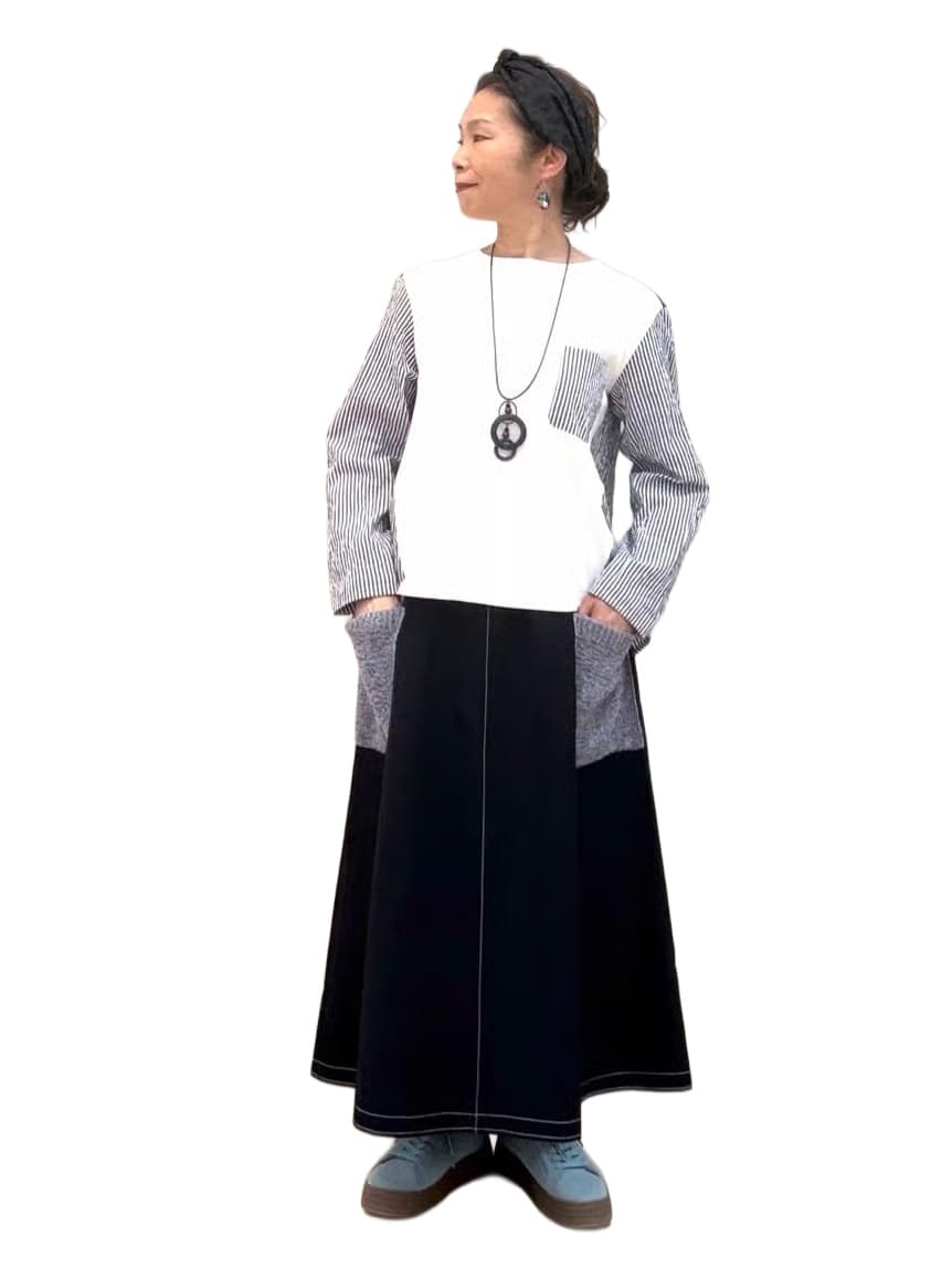 ウエストゴムのスカートは、美しいシルエットと便利な着回し力が抜群。