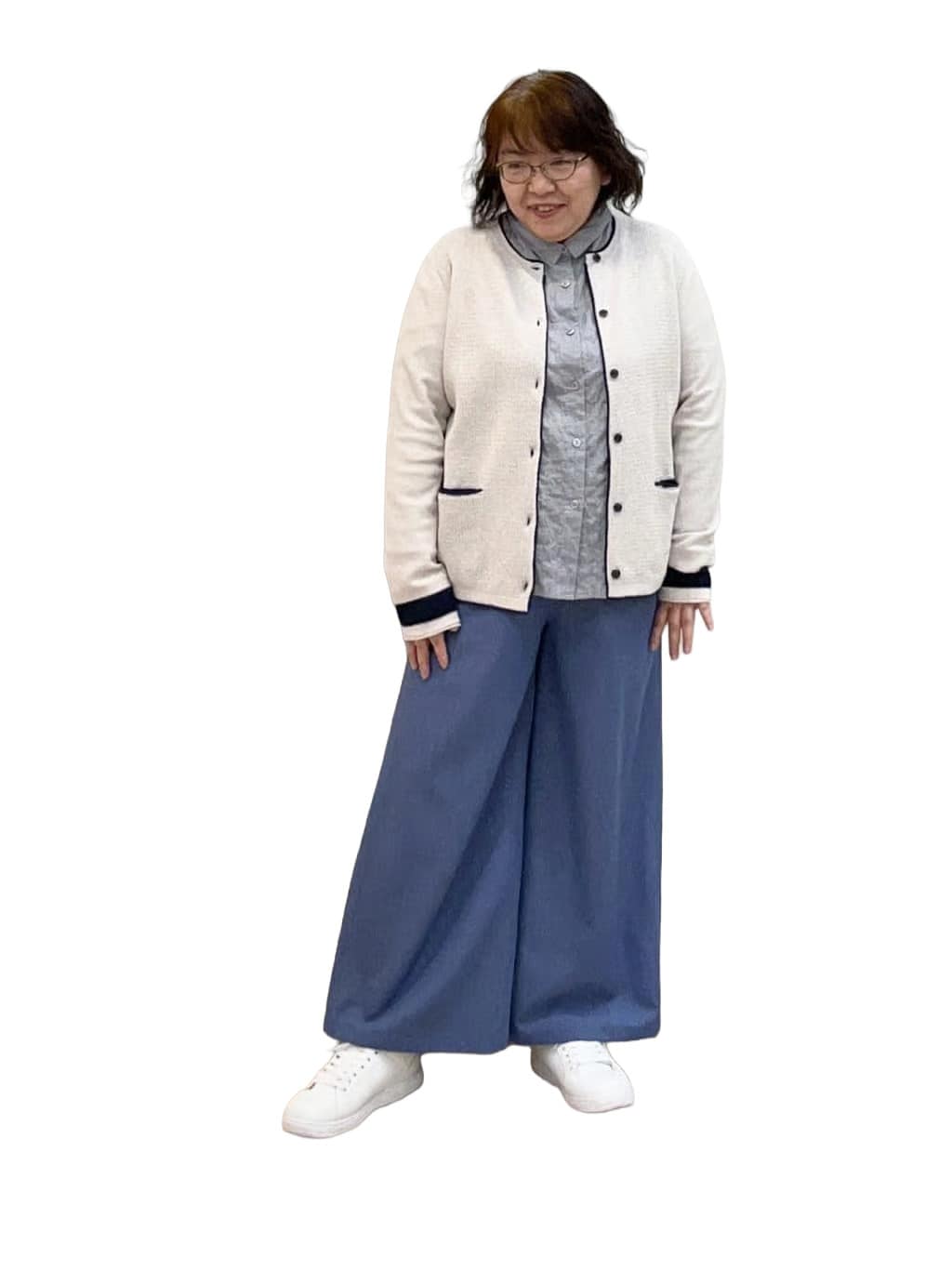オフィスカジュアルや通勤、ドライブなどオンオフ兼用のワードローブにぴったりで、下半身太めや足太めの方も安心して着こなせます。