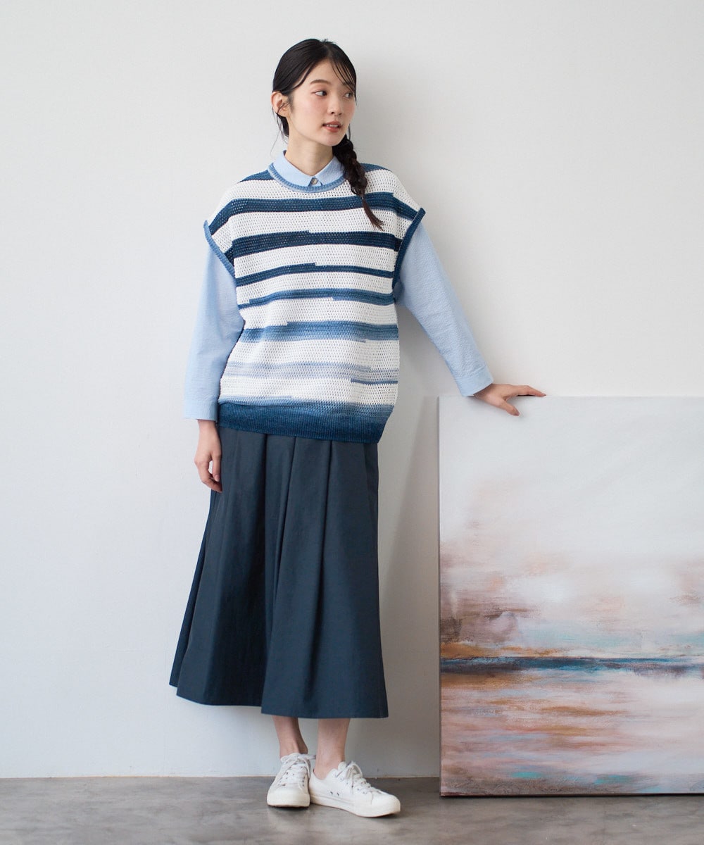 編地と糸で表現したボーダーが価値観のあるニットベスト