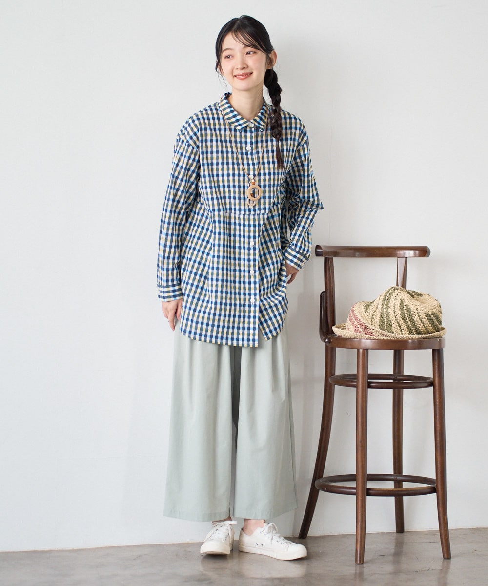 オリジナルチェック柄のチュニック丈ブラウス
