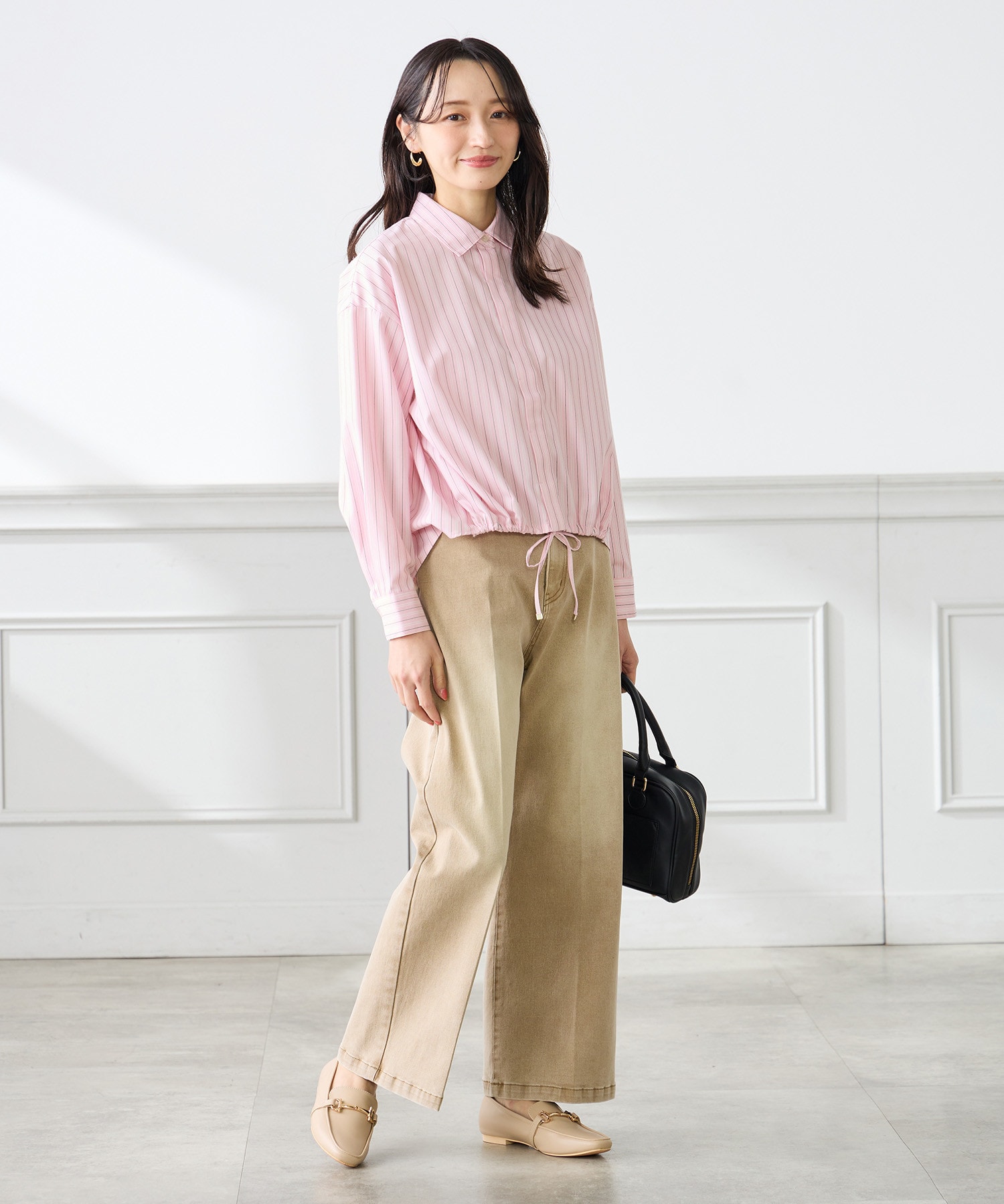 腰回りがもたつかないすっきりシルエットと、ちょうどいいハイウエストでスタイルアップが叶います。
