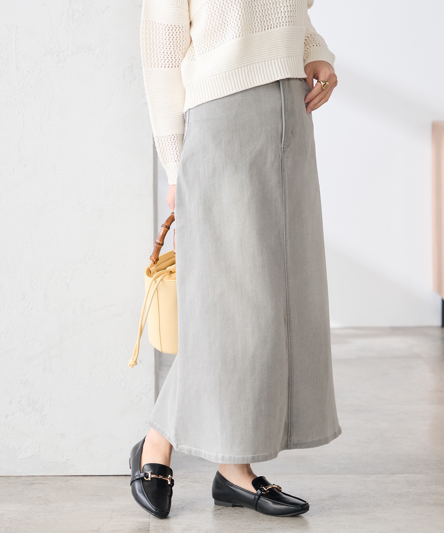 春らしい軽やかさをプラスする、淡いグレーデニム