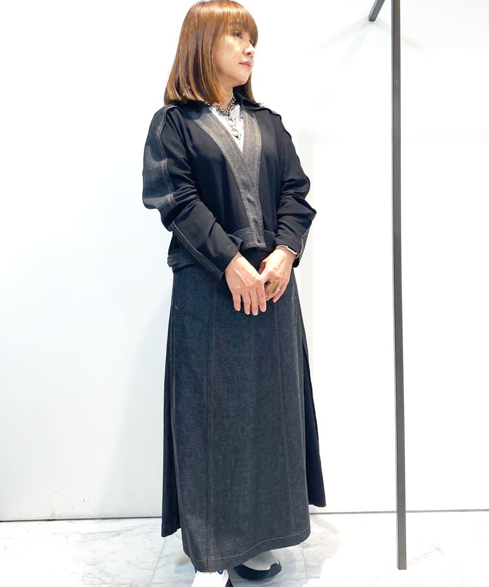 ジャケットはデニム素材とシアージョーゼット素材の異素材をドッキングしお洒落感溢れる一着です。