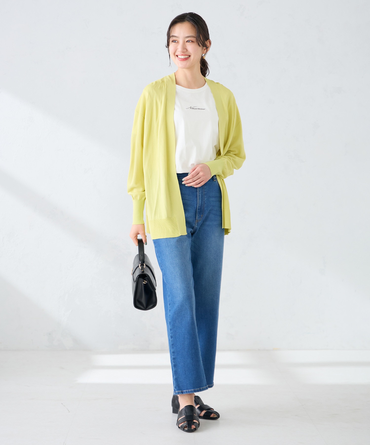 UVカット/接触冷感機能で涼しさと紫外線対策を両立する定番トッパーカーディガン。釦のないトッパーデザインは、サッと羽織れて便利◎シンプルな前立ては縦のラインがすっきり見え、カジュアルすぎないきれいめな印象なのでおでかけシーンのカジュアルスタイルはもちろんオフィスの冷房対策までシーンレスに着回せます◎今年らしいイエローは新色でシンプルなデニムコーデもぐっと鮮度アップしてくれます。