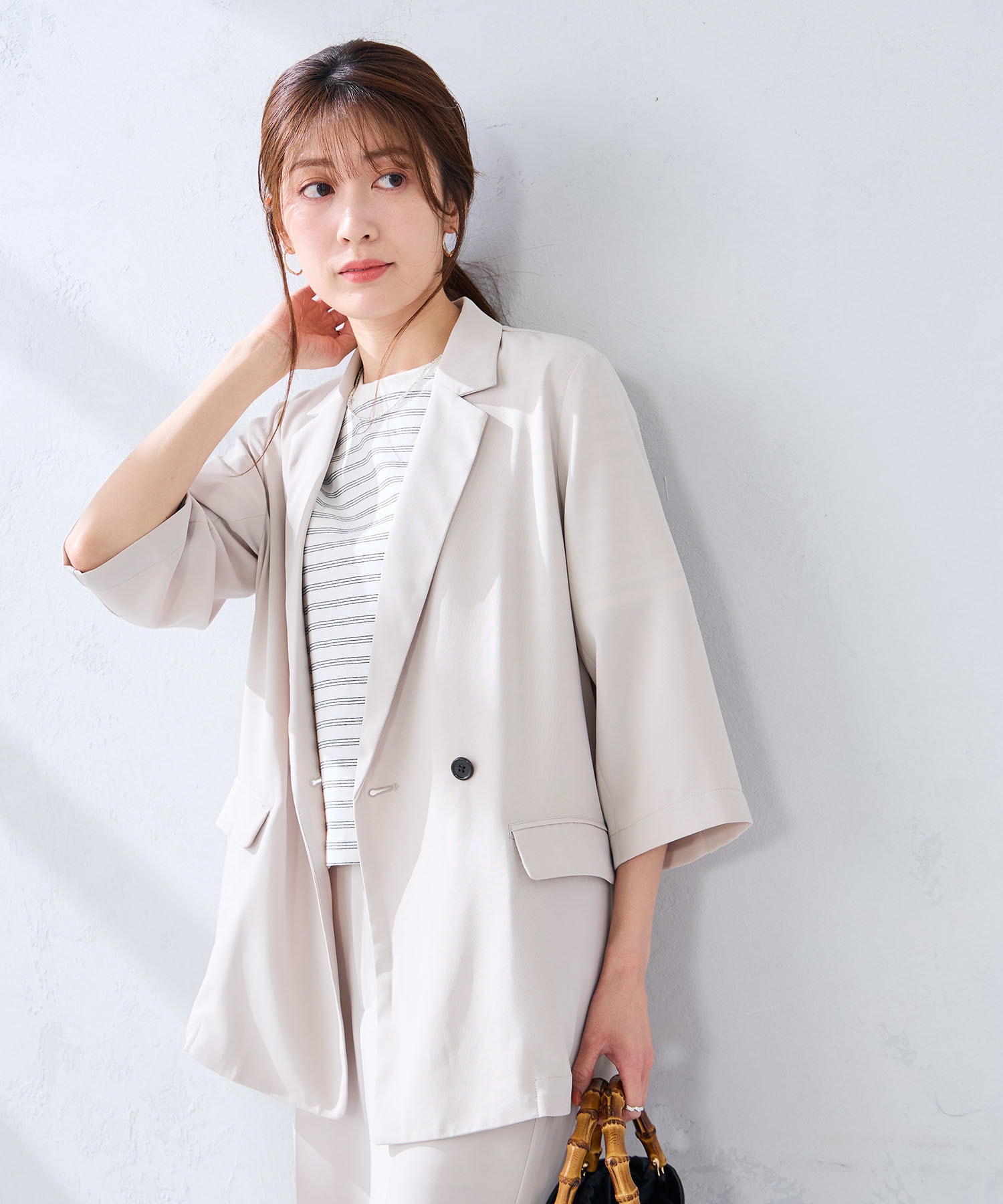 美しくラクな着心地にこだわったカーディガン感覚で羽織れるハーフスリーブジャケット。接触冷感/UVカット/速乾機能付きで夏も重宝すること間違いなしです!同素材パンツとのセットアップスタイルから単品でノースリーブや半袖の上に羽織ってもサマ見えするリラクシーなサイズ感も人気◎