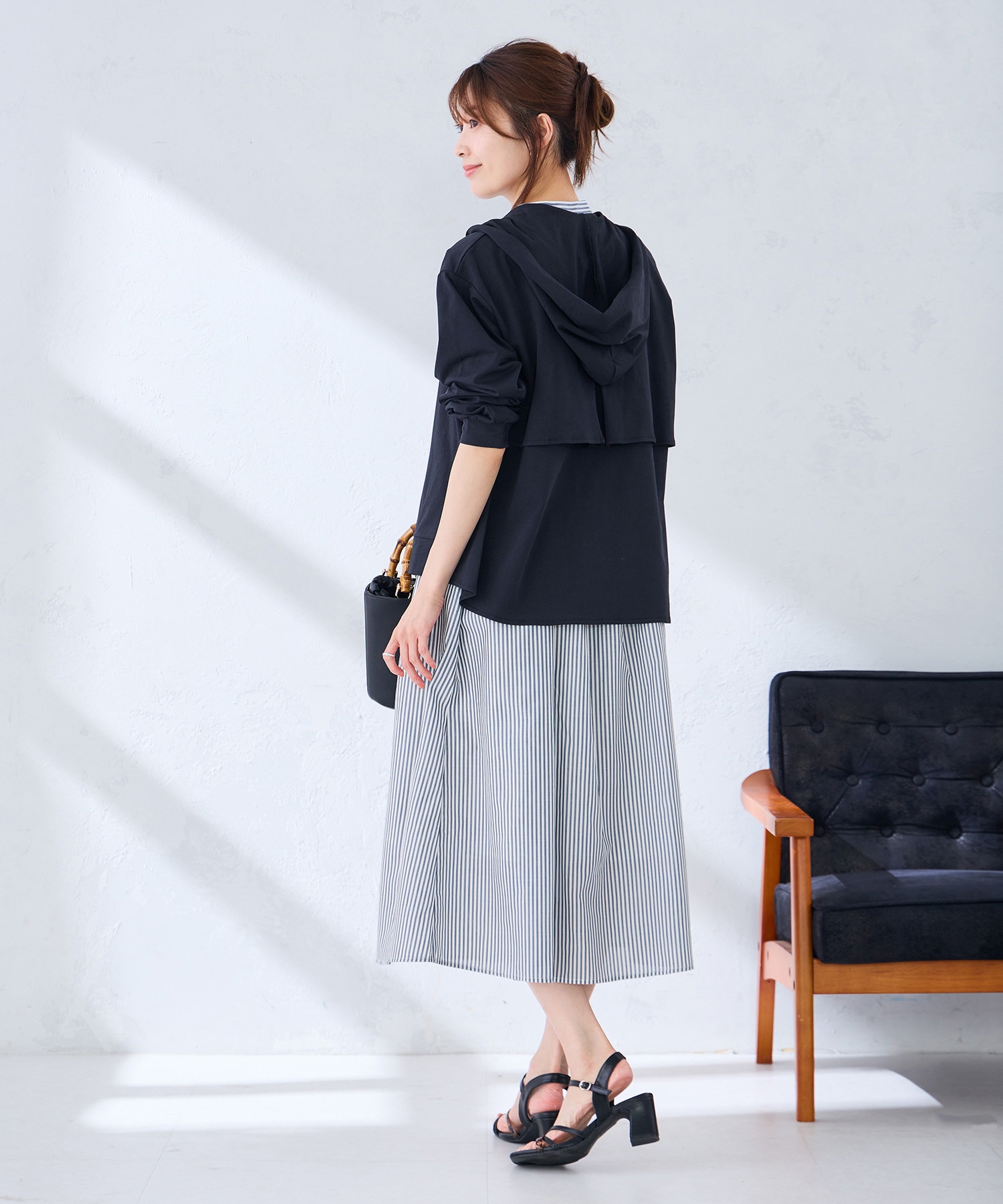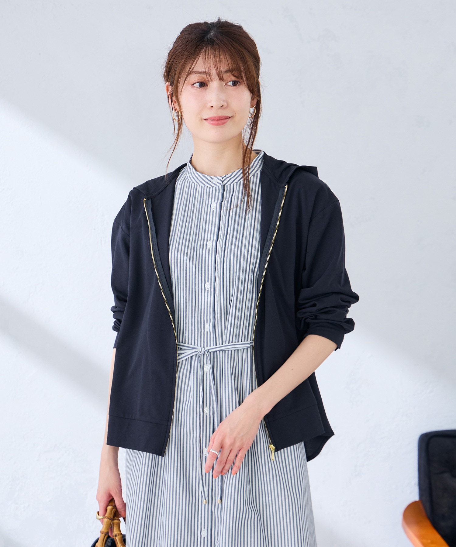 カジュアルな中にも女性らしい印象をプラスするバックフフレアデザインの薄手パーカーです。綿混素材で夏でも肌ざわり◎これからの季節に嬉しいしUVカット機能付きで半袖やノースリーブの上にさっと羽織れる、手放せない一着になりそう!袖口にゴムが入っているので、袖をまくりやすいところも嬉しいポイント◎