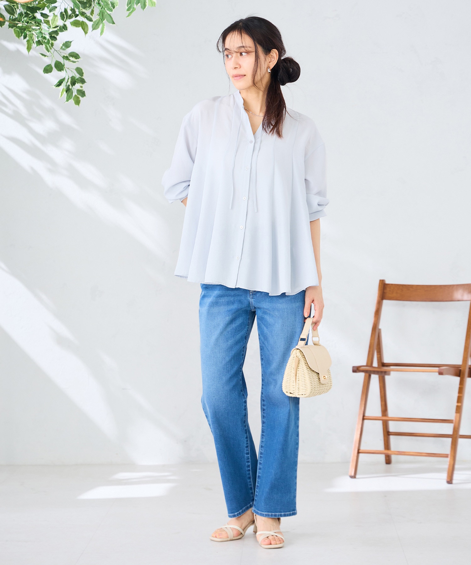 汗ばむ季節にもさらっと着られる、一枚で華やかに決まる爽やかなフレアブラウス。スキッパー衿で大人な抜け感がありさらっと羽織るだけでサマになります。体のラインを拾いにくいふわりと揺れるシルエットも嬉しいポイント◎