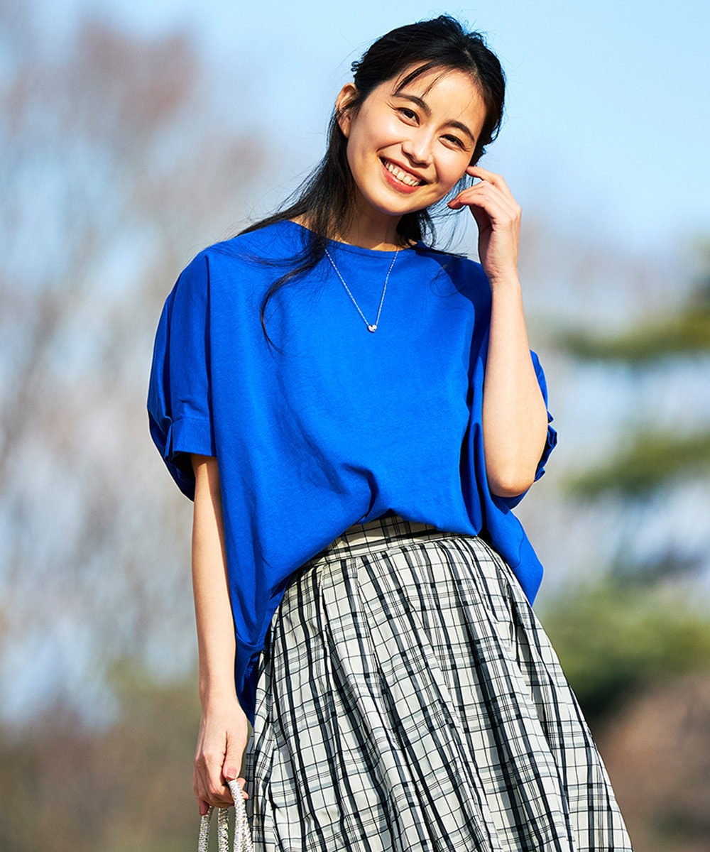 カラバリ豊富でシーンレスに使えるベーシックなプチプラTシャツ。体のラインを拾わないややリラクシングなサイズ感で着心地も◎袖のロールアップデザインがポイントで、こなれた着こなしが叶います。コットン100%で毛羽立ちの少ない表面感の綺麗なカットソー素材を使用しています。シンプルな定番アイテムこそコスパ重視で揃えたいですよね!