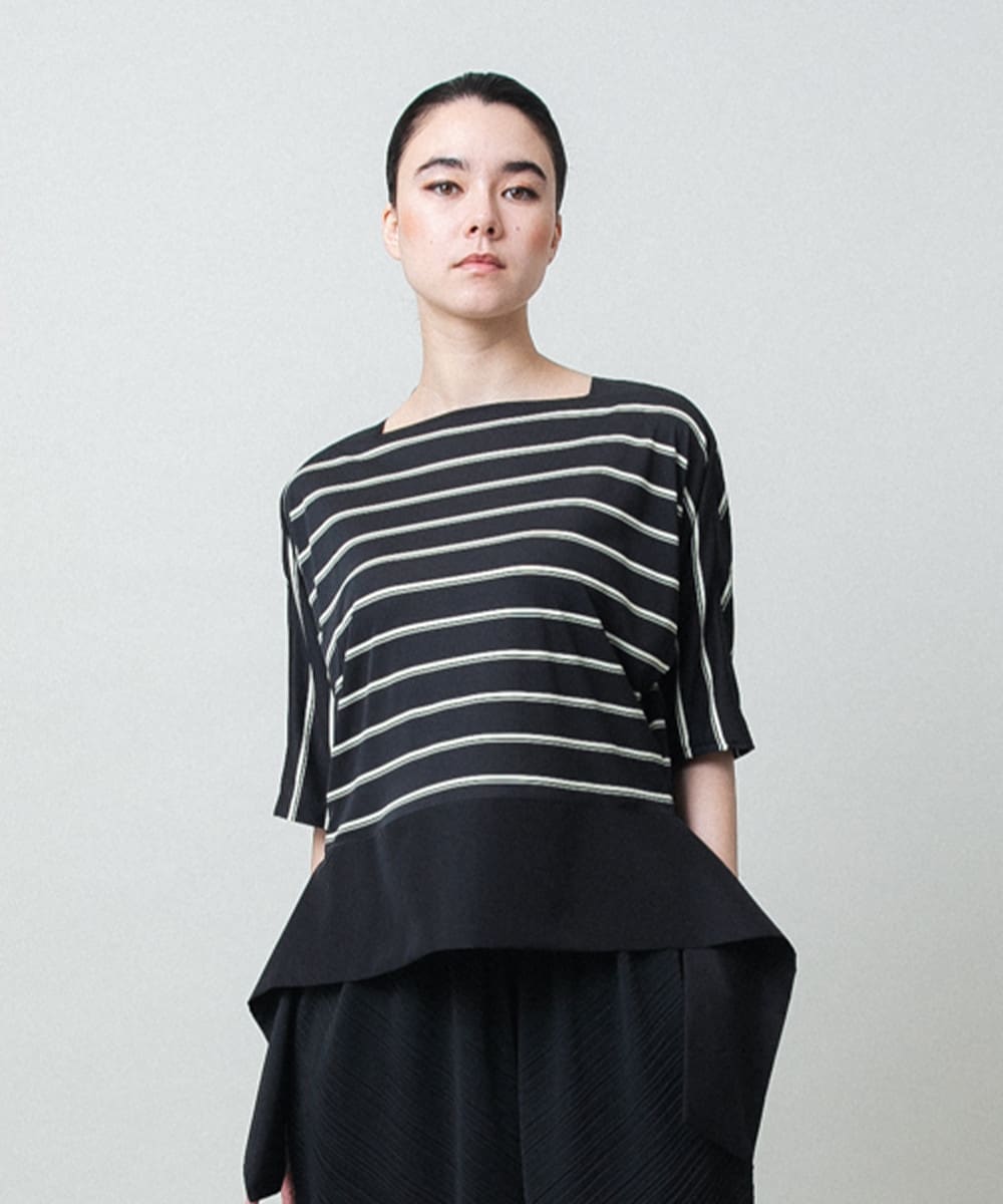 アシンメトリーヘムボーダーブラウス/日本製/洗濯機で洗える