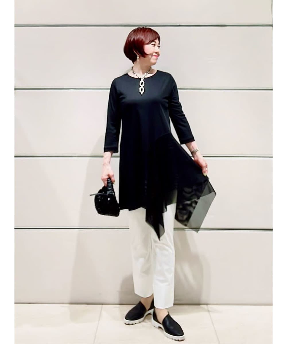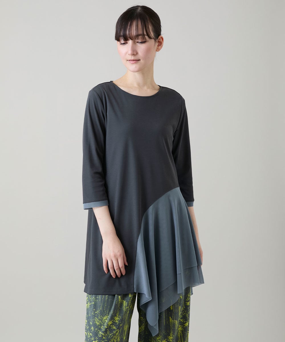 【アイテム詳細】アシンメトリーチュールヘムデザインチュニック