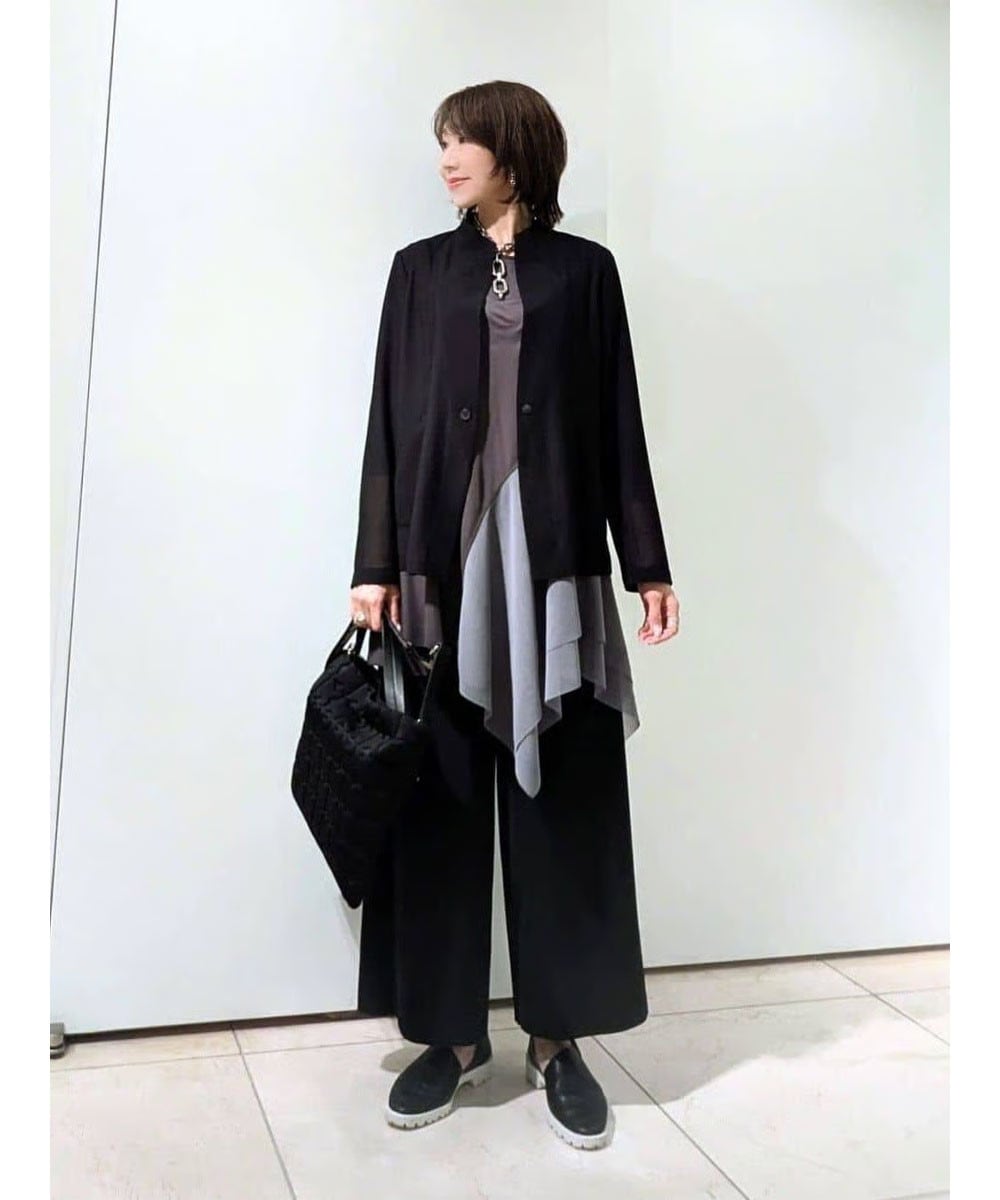 シアーなチュール素材を合わせシンプルながら存在感のある、ボディラインを拾いにくいサイズ感に仕立てました。