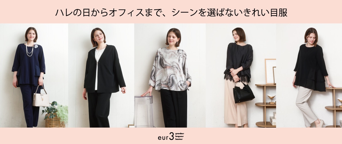 上下それぞれ着回しやすく、セレモニー~お仕事まで幅広く活躍してくれるのが鵜r手強いポイントです。