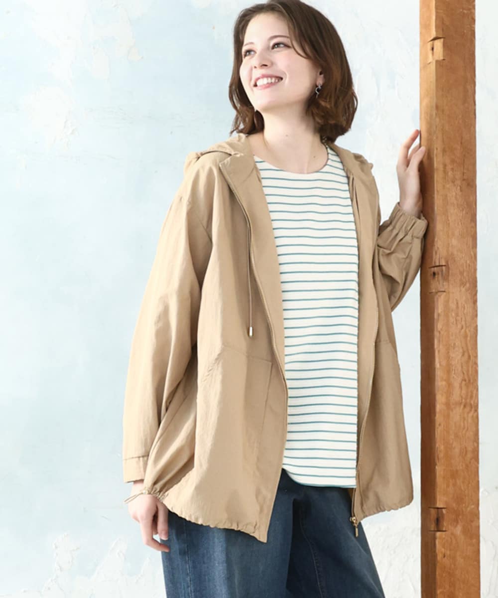 ラフになりすぎず、大人カジュアルに着られるフーディーコート。