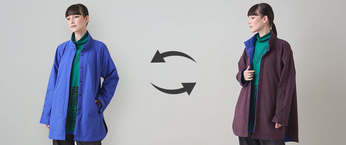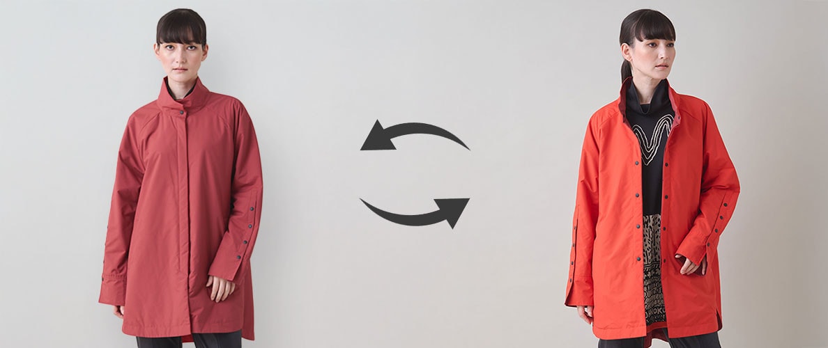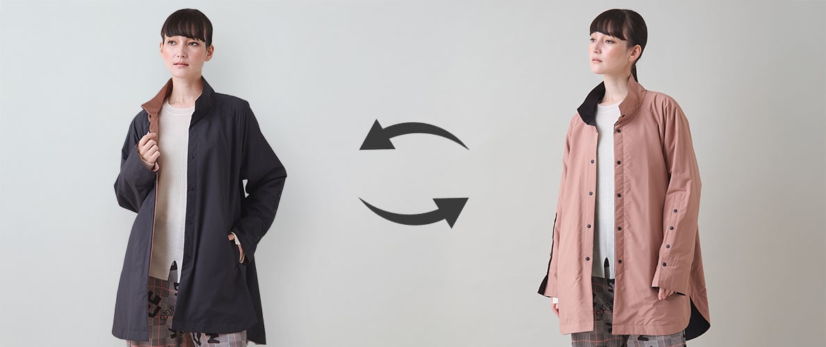 今週のおすすめは、表と裏で印象が変わる、配色リバーシブルの軽量コート。