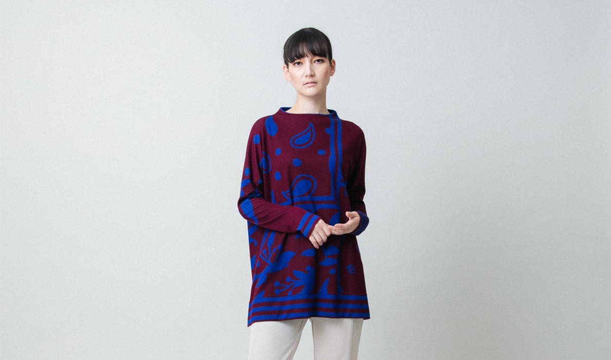 幾何ペイズリーボックスシルエットチュニック/日本製/洗える