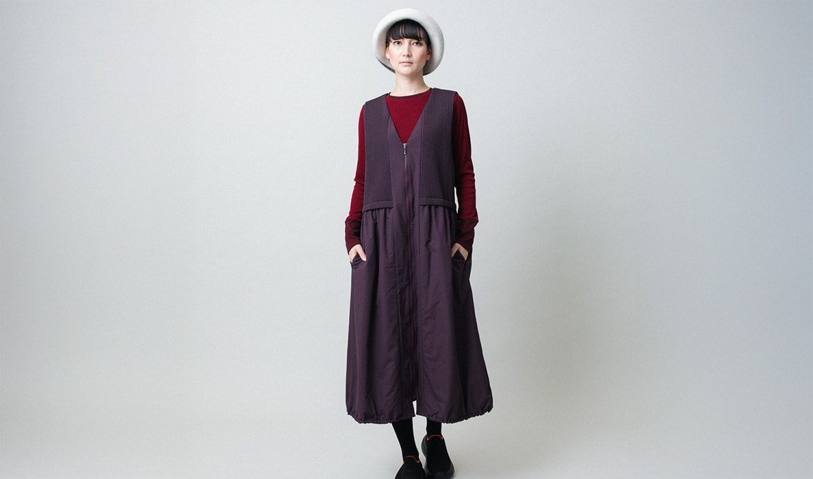 前を開けてロングジレとしても着用でき、冬はコートインのライナーとしてもお楽しみいただけます。