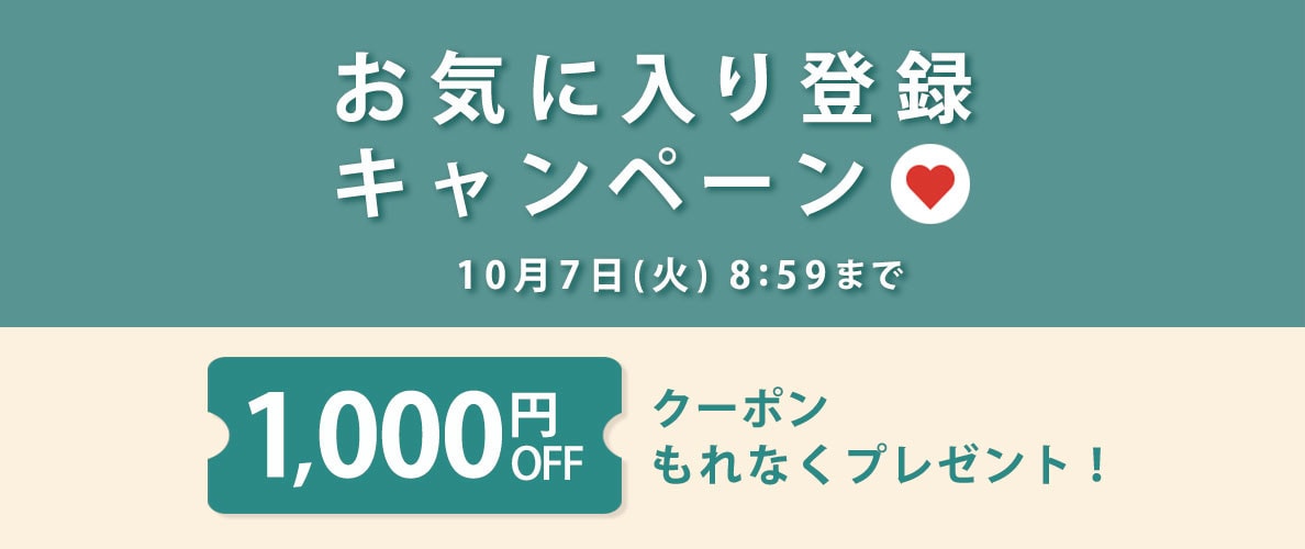 【1,000円OFFクーポンプレゼント】お気に入り登録キャンペーン開催中!