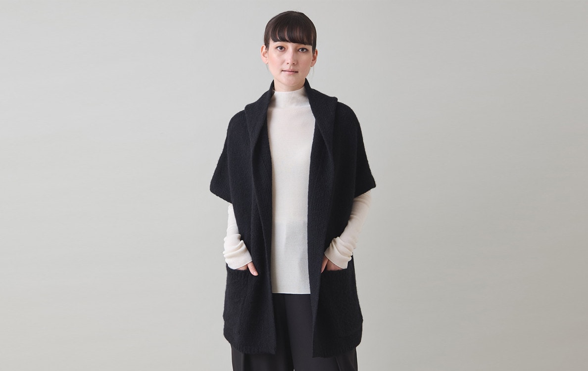 冬のレイヤードスタイルに欠かせないデザインニットジレ。