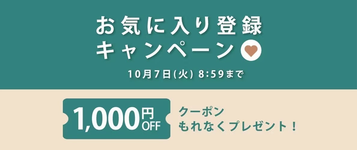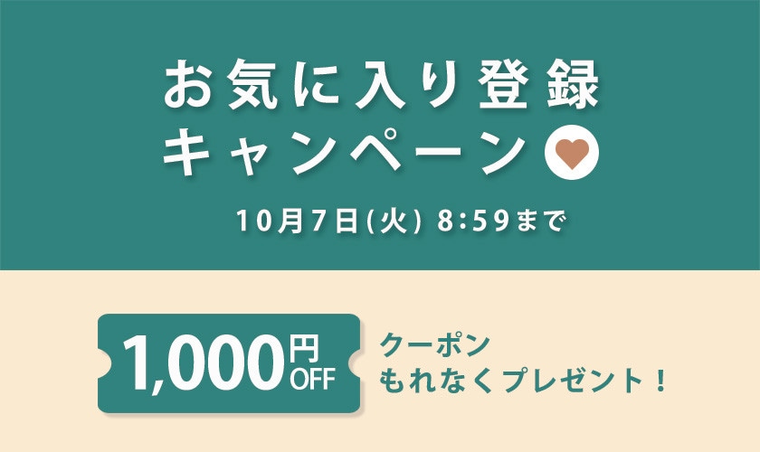気になる商品を10個以上お気に入りに登録された方全員に、もれなく1,000円OFFクーポンをプレゼント