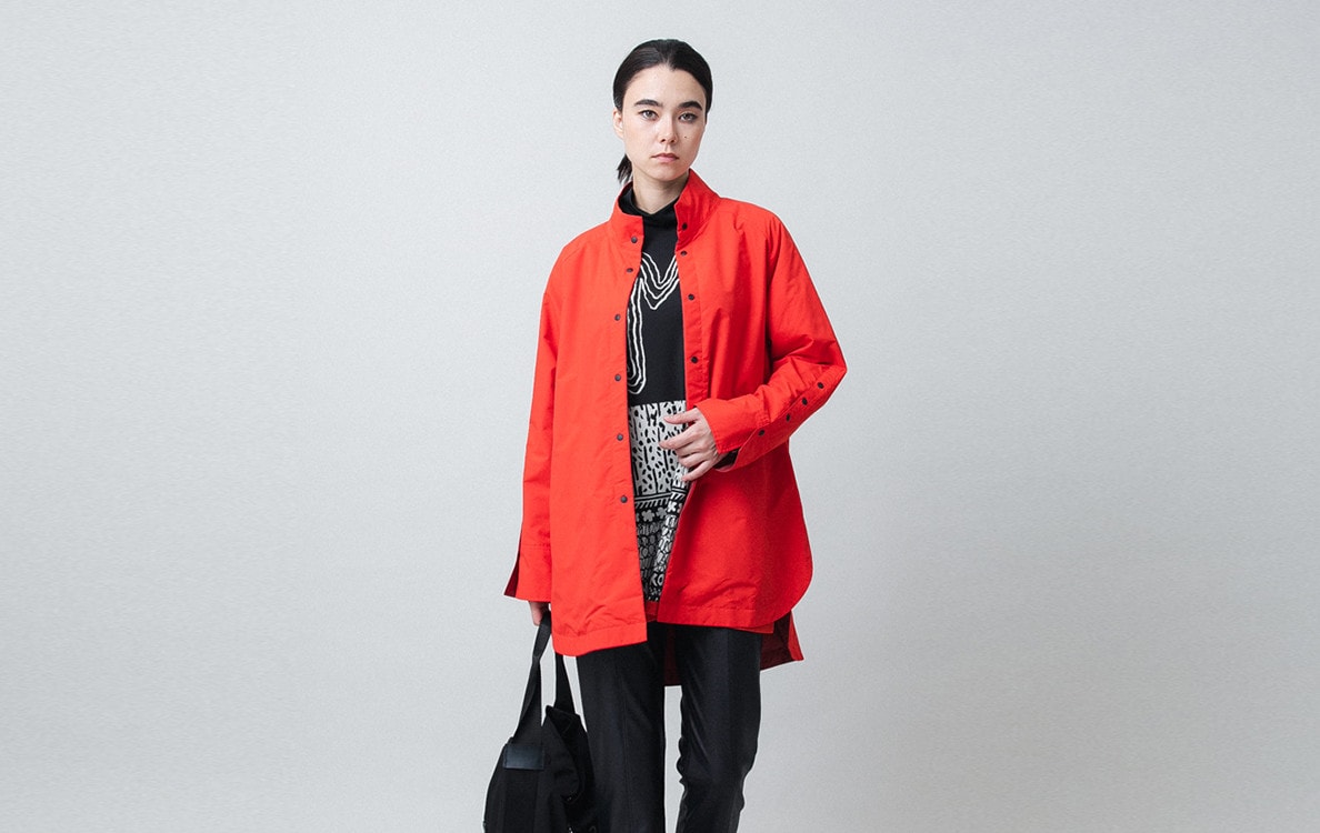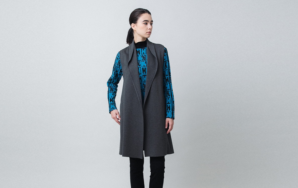 スタイリッシュな印象ながらも衿元から裾にかけてカーブを描くことで女性らしい柔らかな雰囲気を演出します。