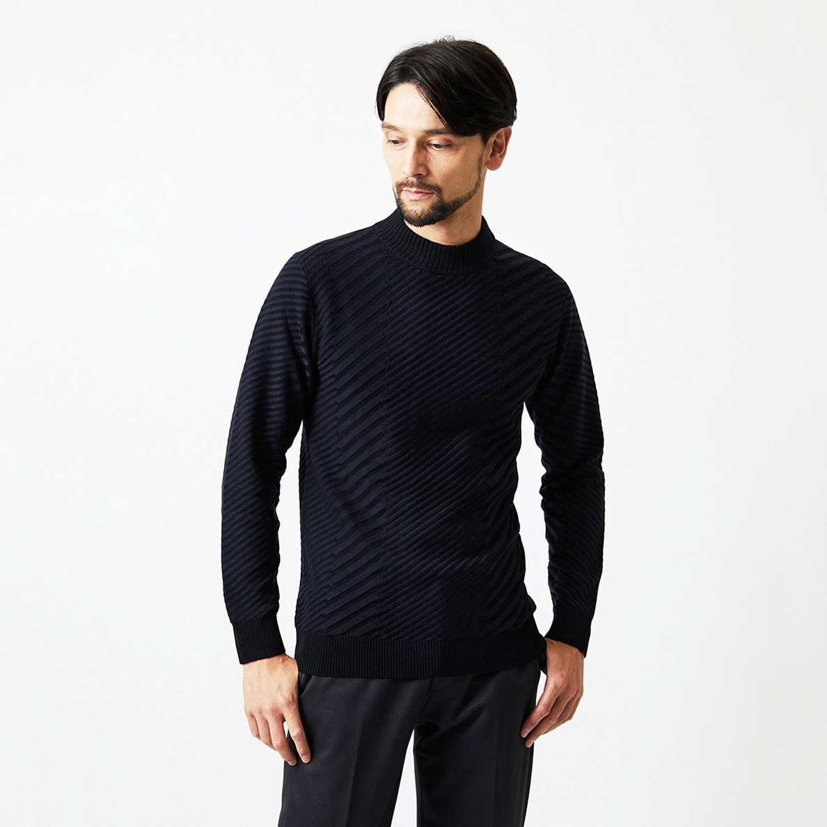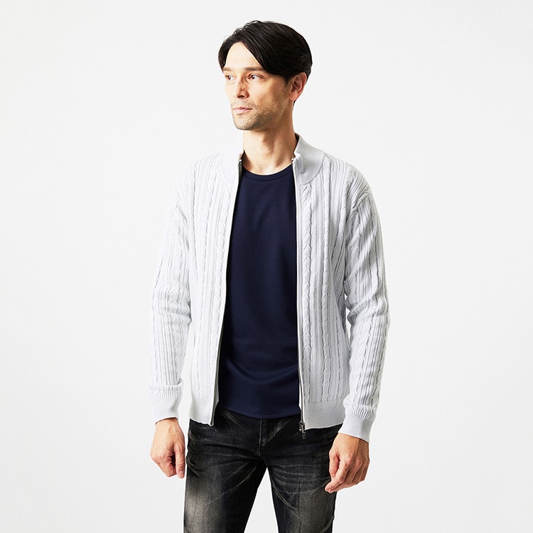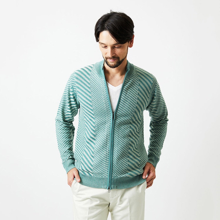 フロントにはダブルジップを採用し、着こなしの幅が広がるブルゾン型ニット。