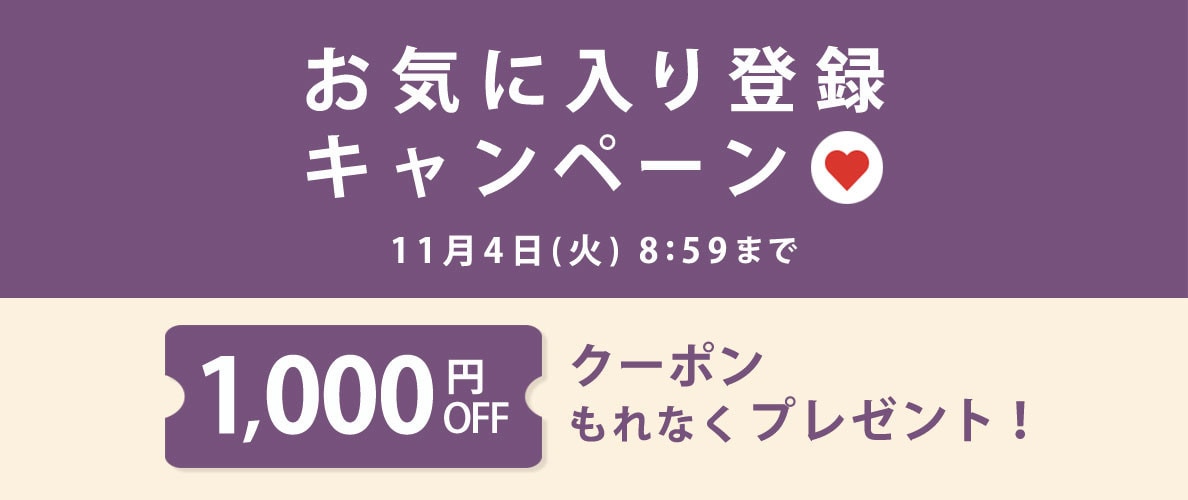 【1,000円OFFクーポンプレゼント】お気に入り登録キャンペーン開催中!