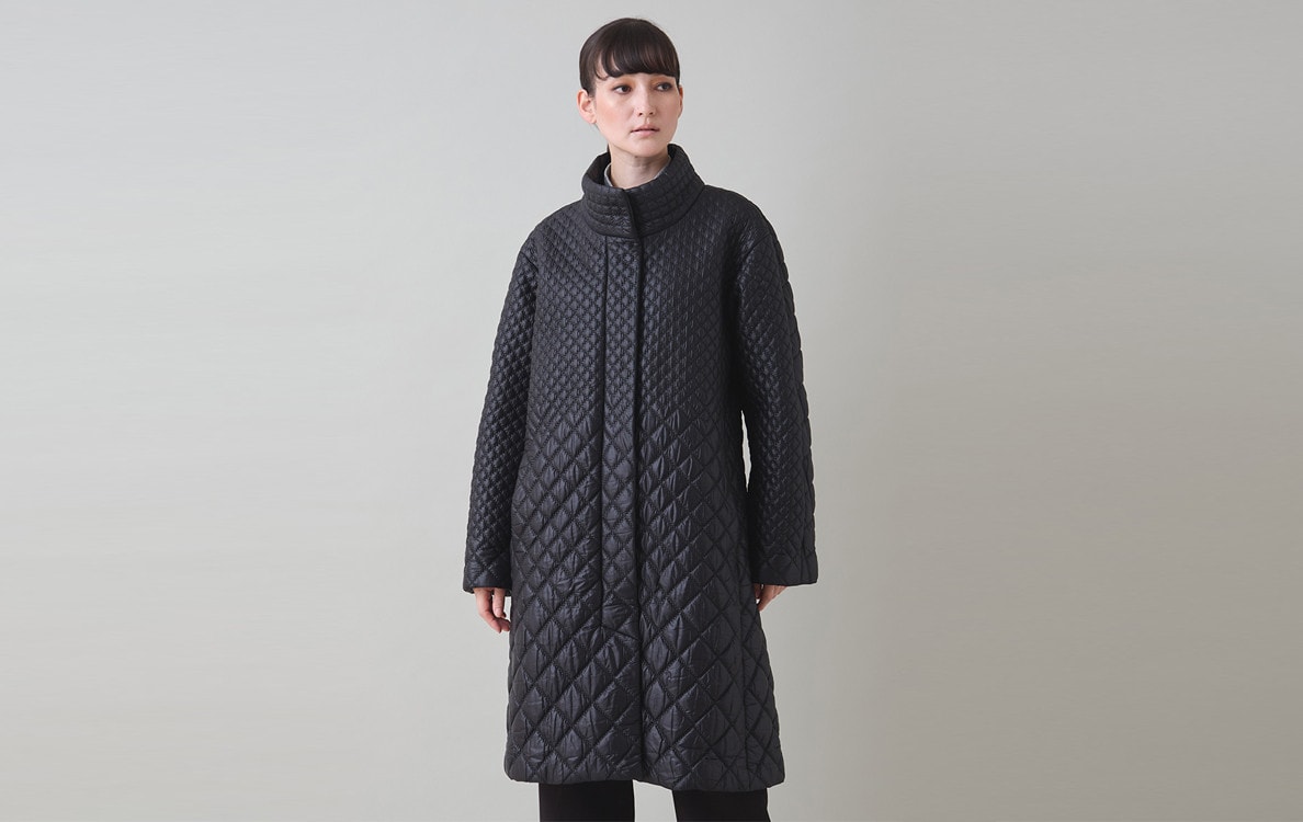 キルティングの表情が美しいモードカジュアルなデザインコート。