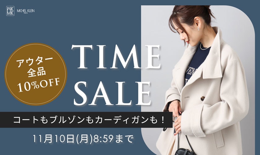 MKミッシェルクランではアウター全品10%OFFのタイムセールを開催!