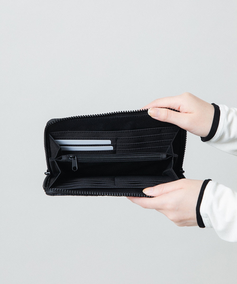 真ん中にはファスナー付きのポケットがあり小銭などを入れるのにも◎。