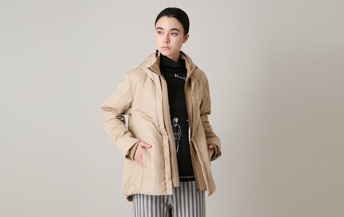 程よい光沢感とロングシルエットで、洗練された印象とともに防寒もかなえます。