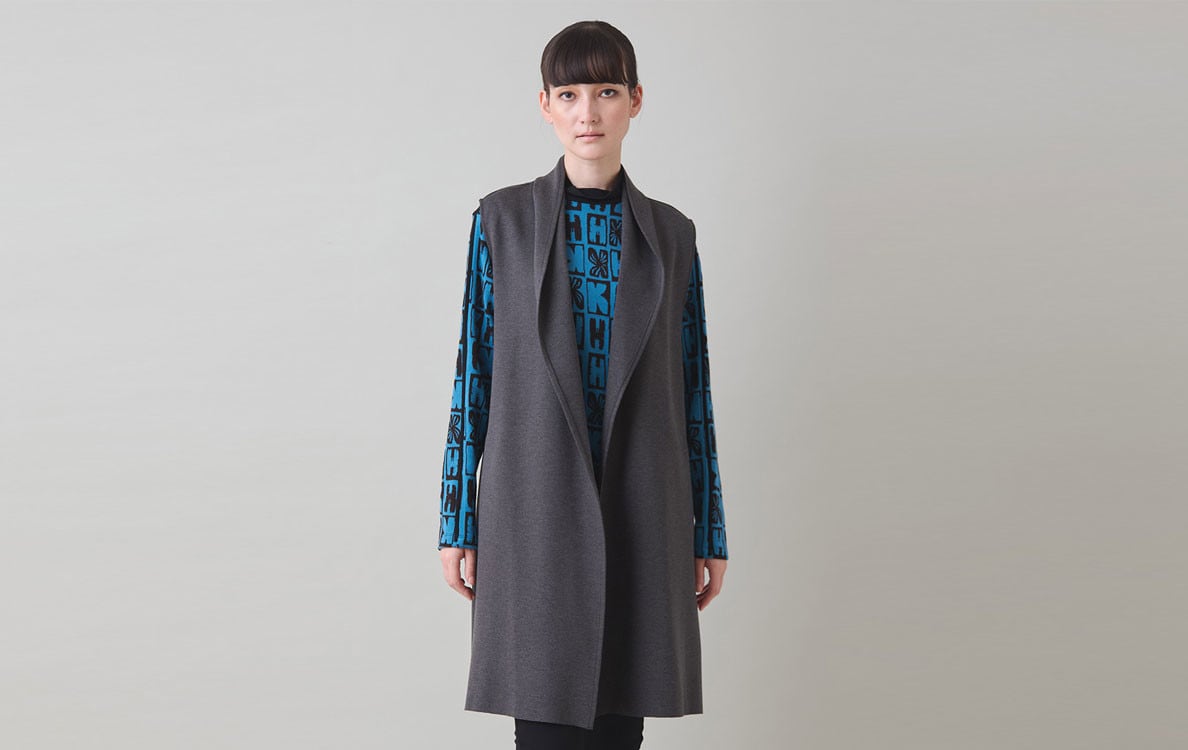スタイリッシュな印象ながらも衿元から裾にかけてカーブを描くことで女性らしい柔らかな雰囲気を演出。