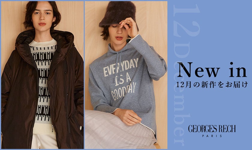ダウンコートやシアープリーツスカートなど素材の対比を楽しめる、鮮度のあるコーディネートをご提案いたします。