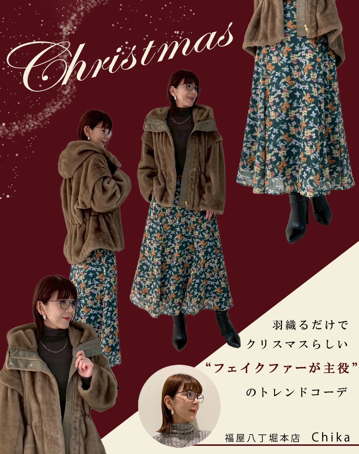 クリスマスの夜は、フェイクファーを主役にした旬のトレンドコーデで、きらめくイルミネーションの街へ。