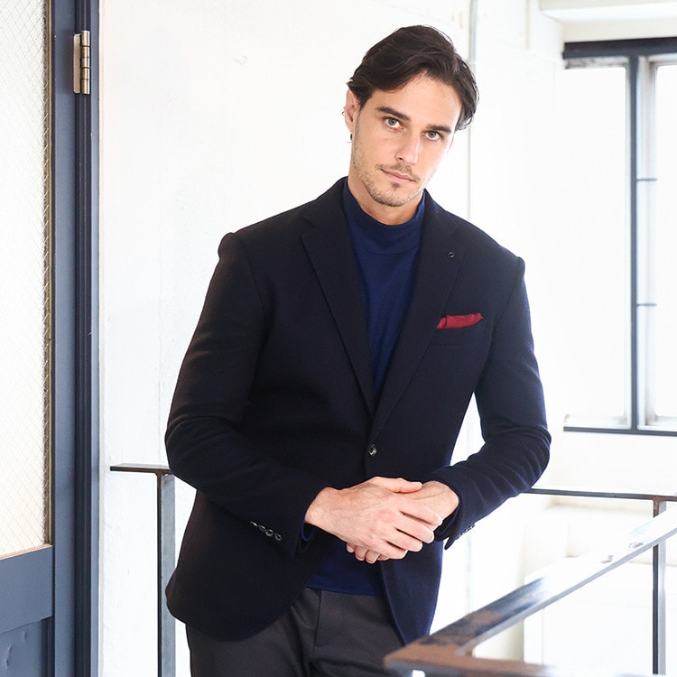ジャージ素材でありながらもウールのエレガンスを存分に感じられる、まさに“動けるドレスジャケット”にふさわしい素材です。