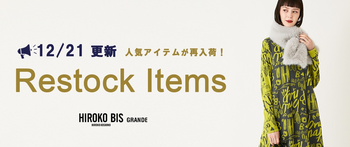 ヒロコビスの大きいサイズです。ヒロココシノのもつエレガントマインドを表現し、都会的にソフィスティケートされた単品コーディネートのウエアリングを提案する、ヒロココシノのディフュージョンブランド。